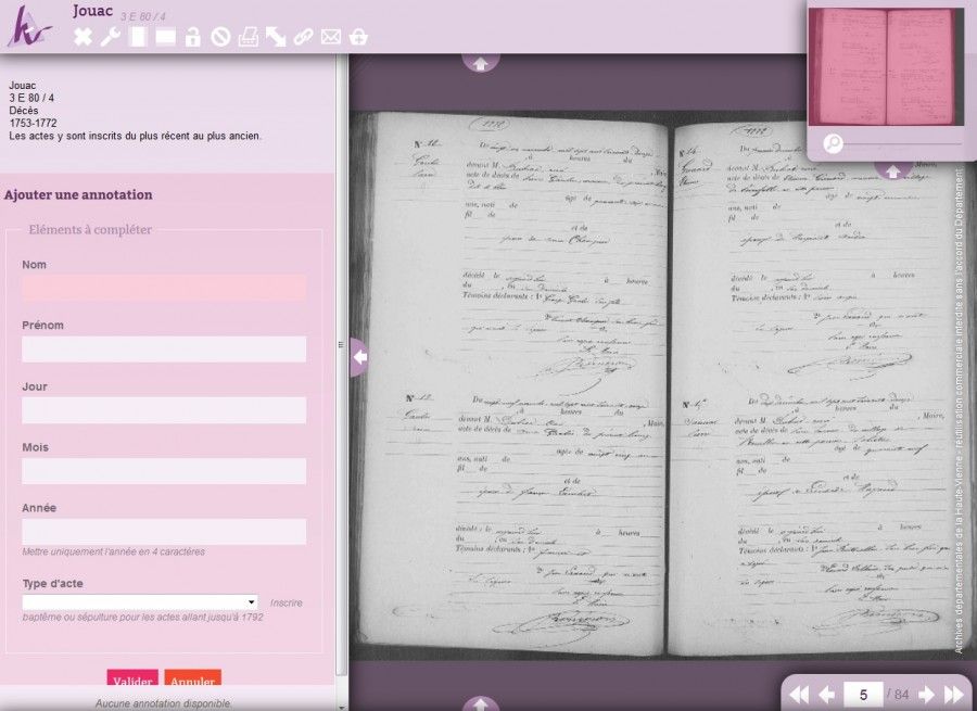 Mise en place de l'indexation collaborative sur l'état civil