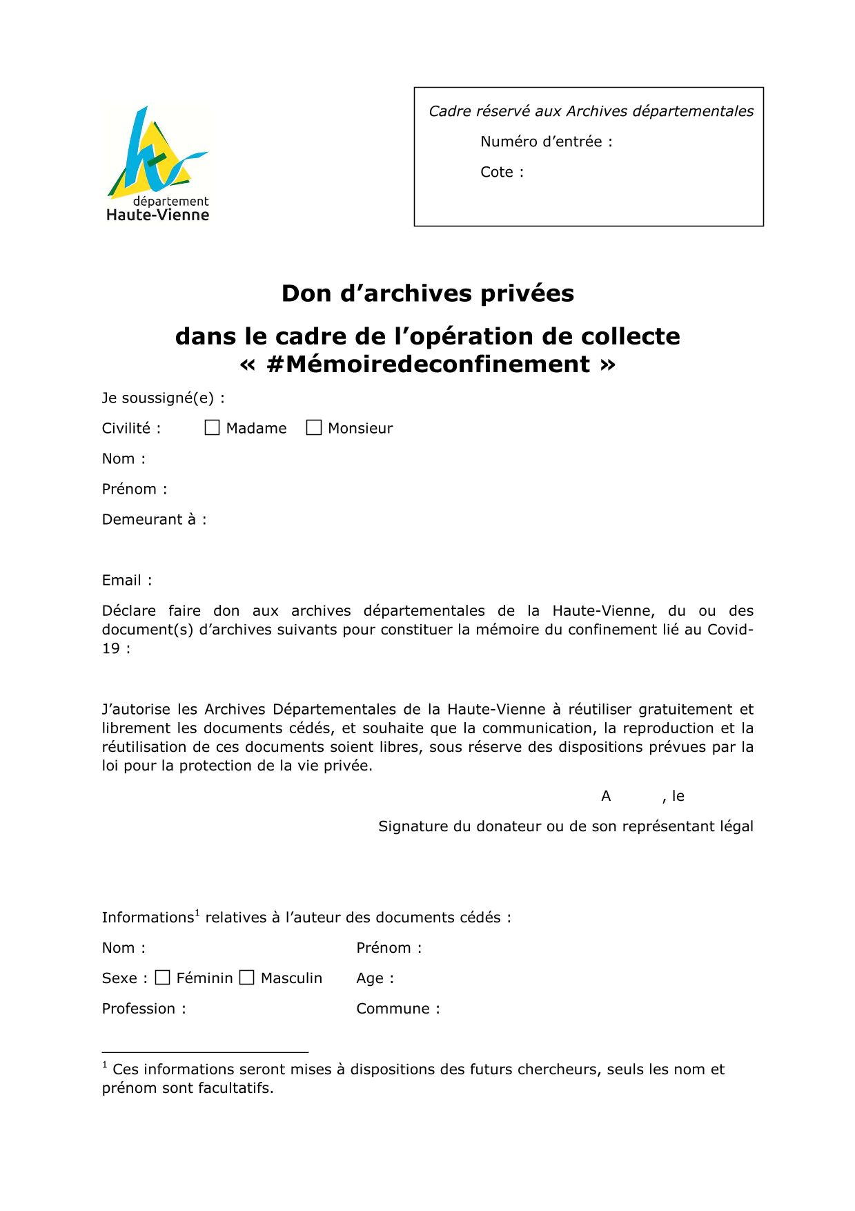 Pour toutes vos questions, vous pouvez nous contacter à l’adresse mail memoiredeconfinement.archives@haute-vienne.fr