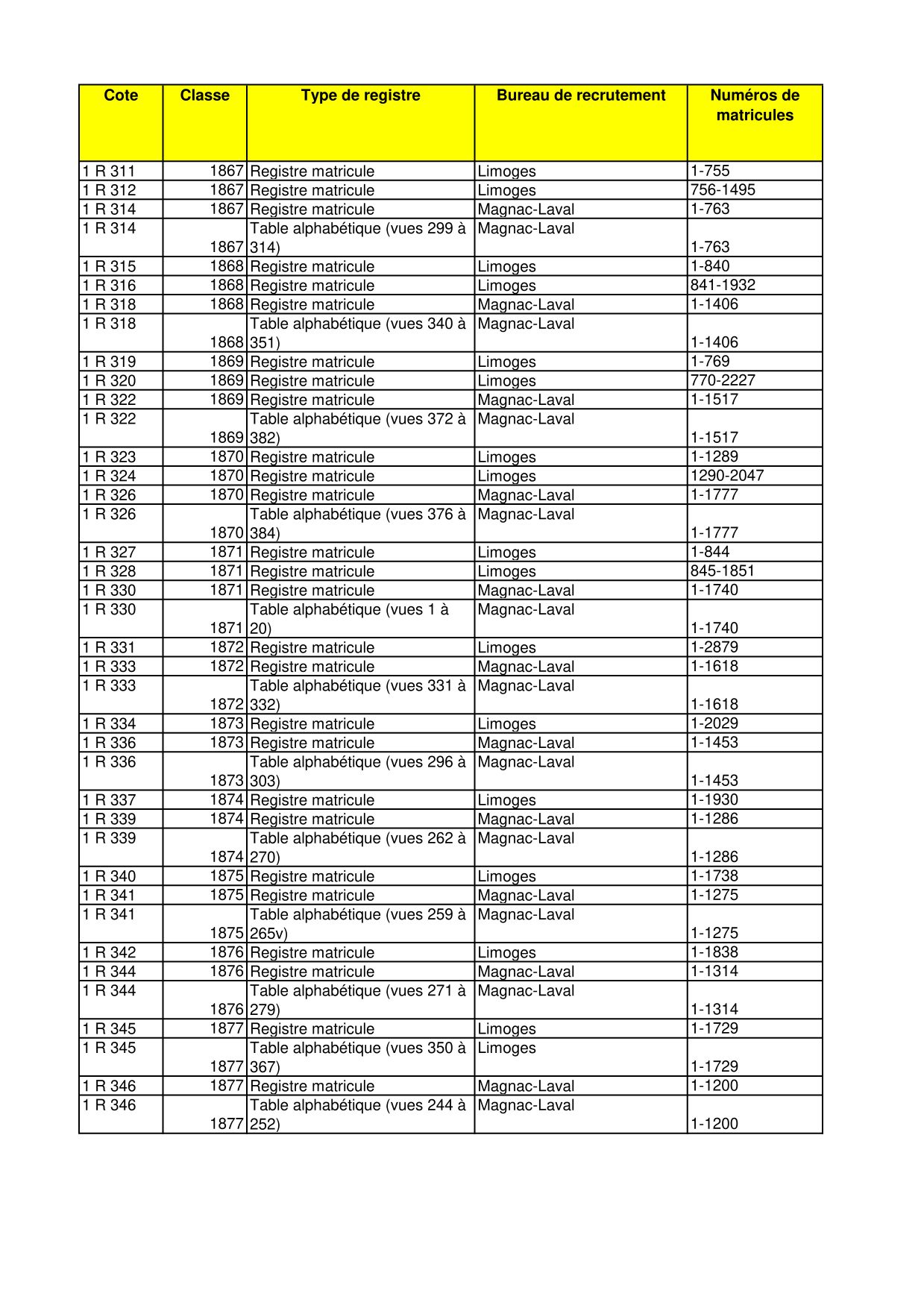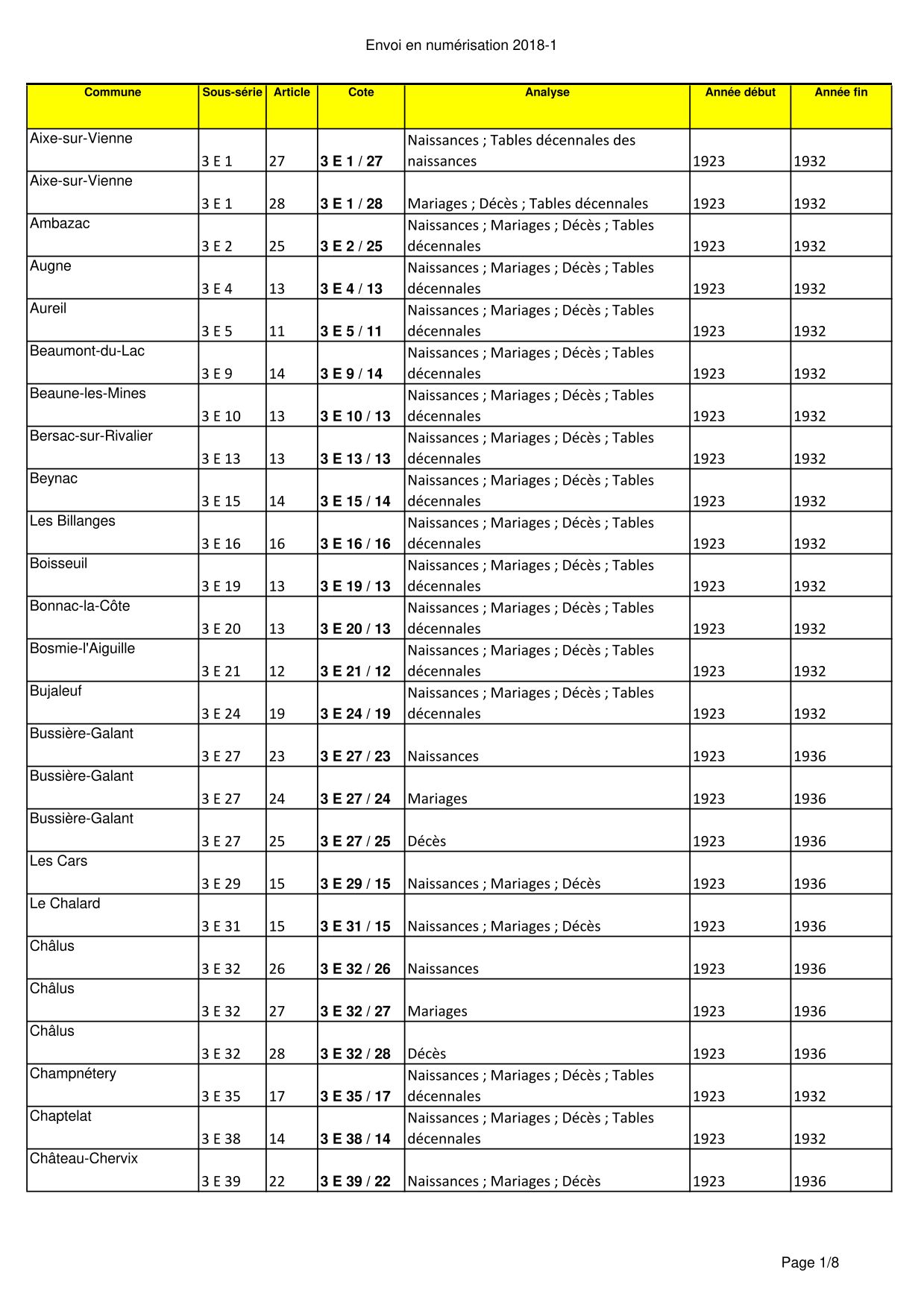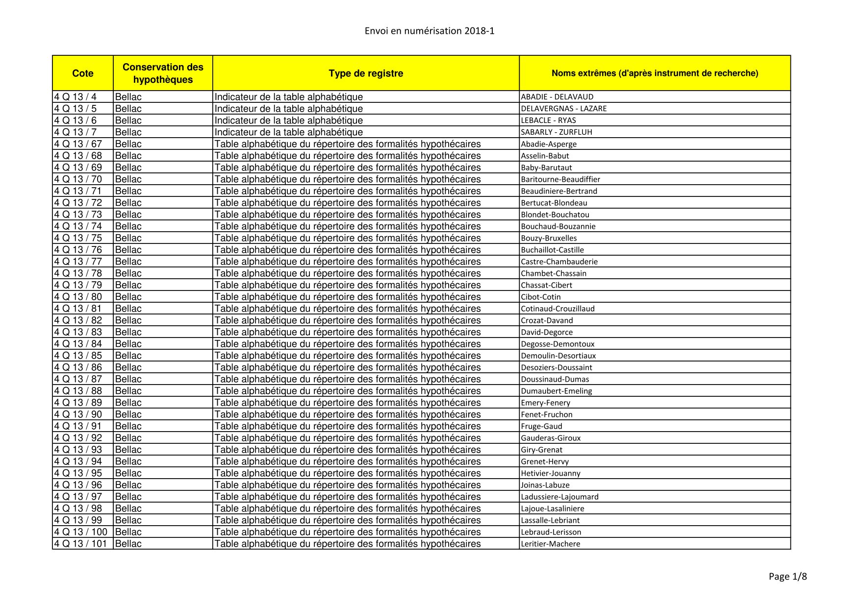 les indicateurs et tables alphabétiques des conservations des hypothèques de Bellac, Limoges, Rochechouart et Saint-Yrieix-la-Perche.