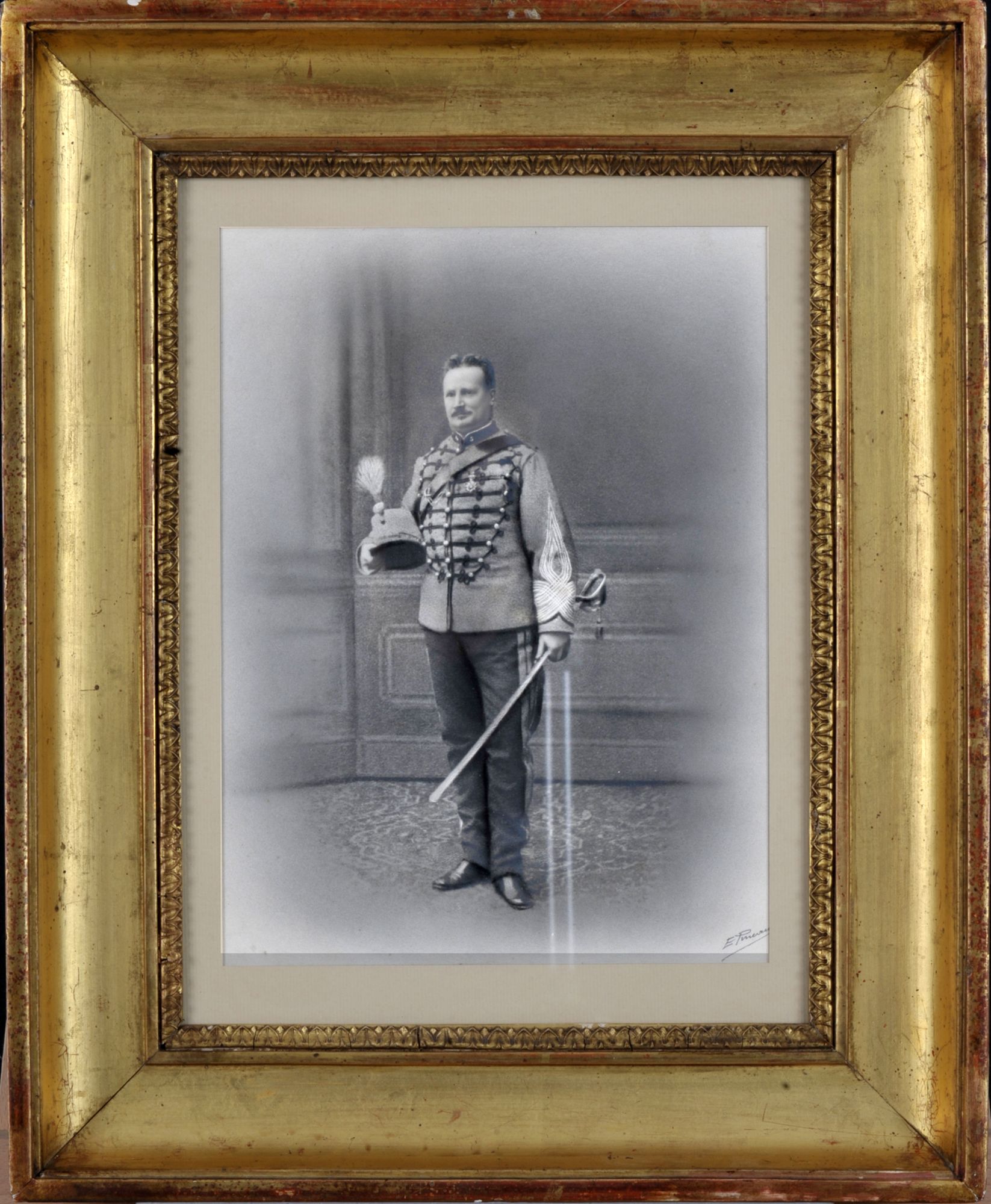 Il s'agit d'une confirmation du titre du Premier Empire, 1 pièce parchemin encadrée 76X62 cm, avec à droite dessin des armes de la famille de Gay de Vernon « d'azur au chevron de sable accompagné de trois geais du même », en bas à droite lacs de soie rouge et verte. Inscription manuscrite au dos « M. Gay de Vernon 912 » (1815).