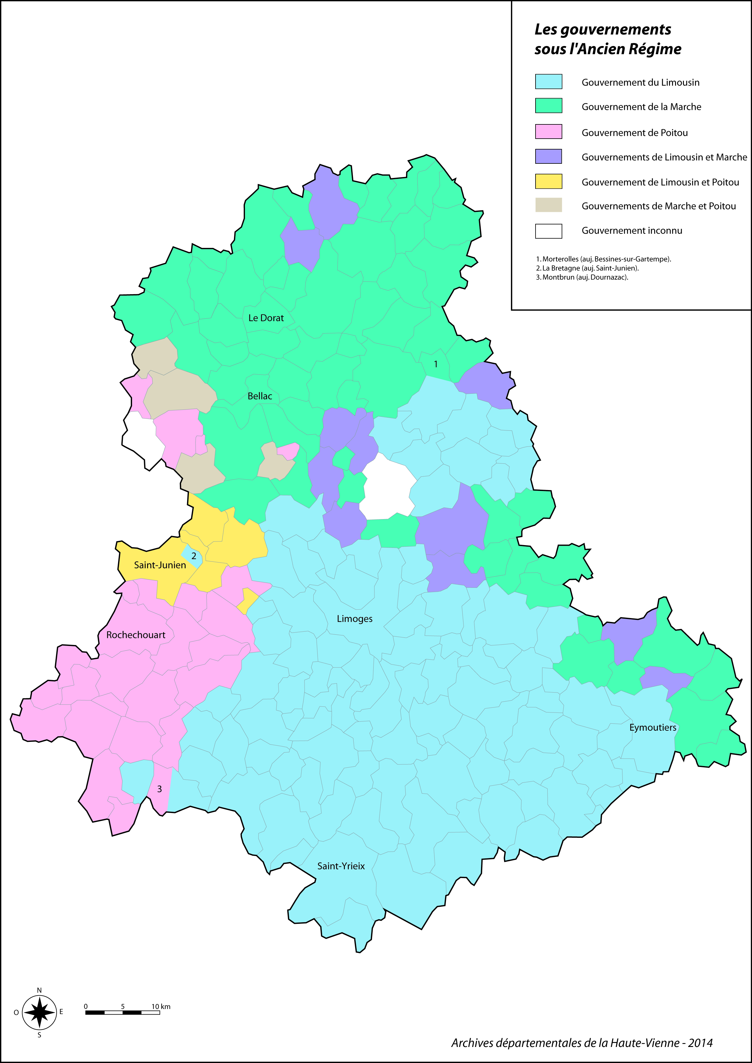 Le gouvernement était une circonscription placée sous l’autorité d’un gouverneur, représentant de la personne du roi. Le titulaire de cette charge, généralement choisi parmi les membres des plus grandes familles du royaume, bénéficiait d’une sorte de délégation générale de l’autorité royale. L’actuel département de la Haute-Vienne se trouvait dans le ressort de trois gouvernements : Limousin (subdivisé au XVIIIe siècle entre Haut et Bas Limousin), Marche et Poitou.
