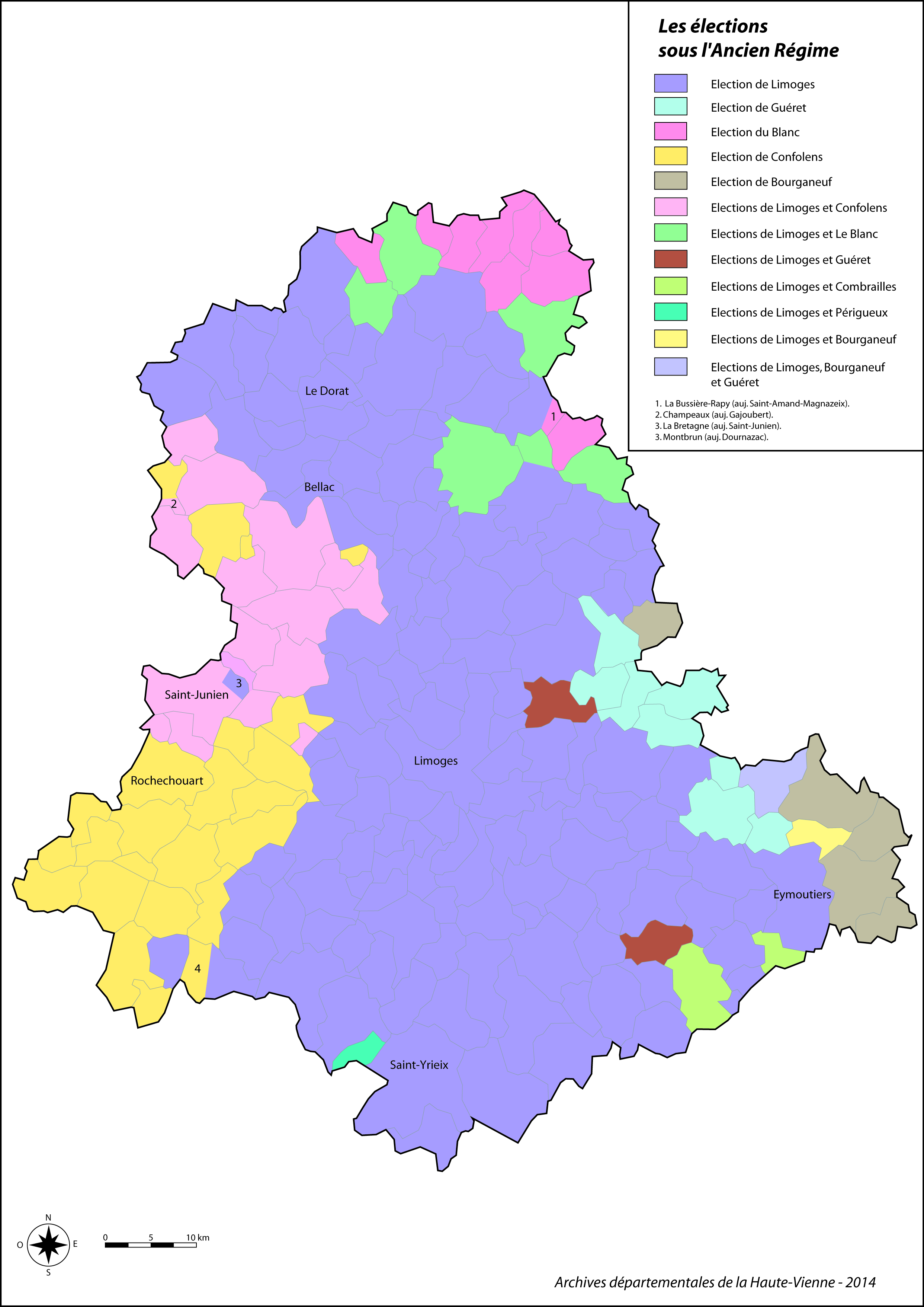 La généralité de Limoges fut créée en 1586. Elle comprenait à l’origine 9 élections puis 5 après une réforme en 1694 : Angoulême, Bourganeuf, Brive, Limoges et Tulle. Le territoire de la Haute-Vienne relevait de 8 élections différentes ressortissant de 5 généralités : élections de Limoges, Bourganeuf et Angoulême (généralité de Limoges), élection de Confolens (créée en 1714, généralité de Poitiers), élections de Guéret et des Combrailles (généralité de Moulins), élection du Blanc (généralité de Bourges) et élection de Périgueux (généralité de Bordeaux).