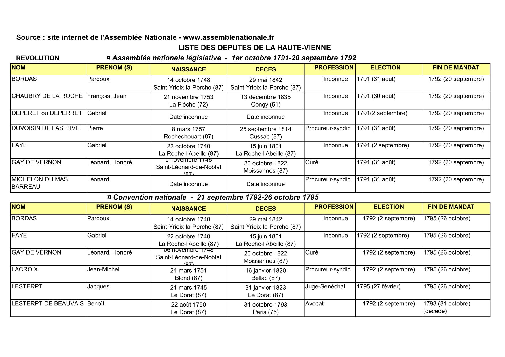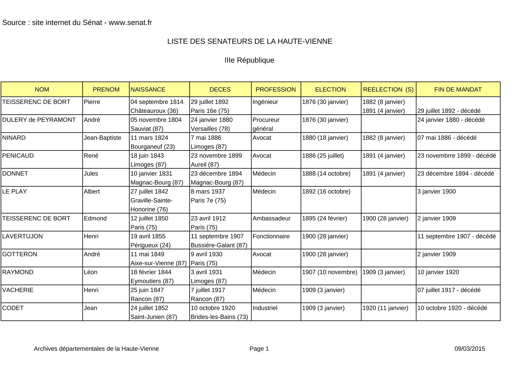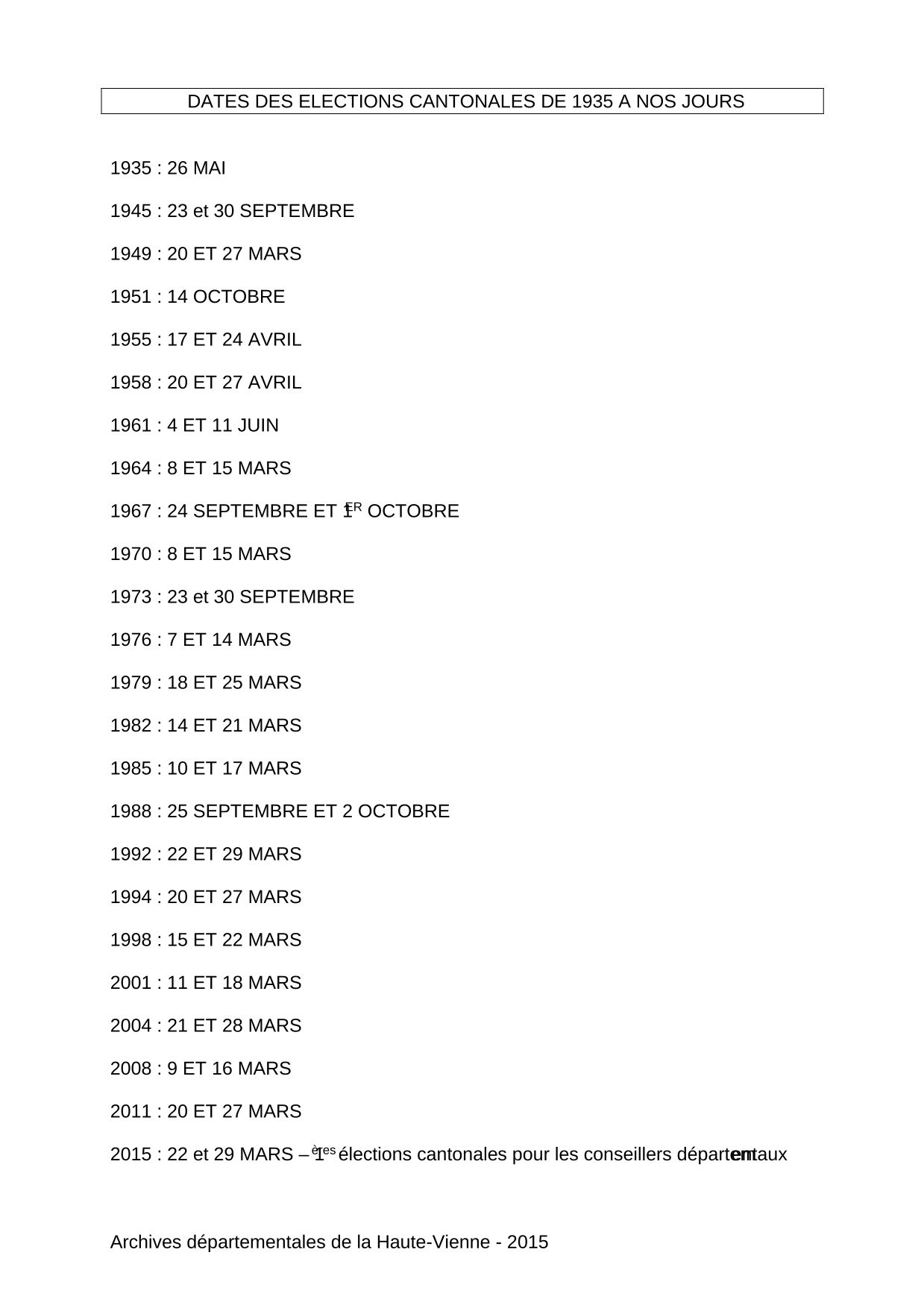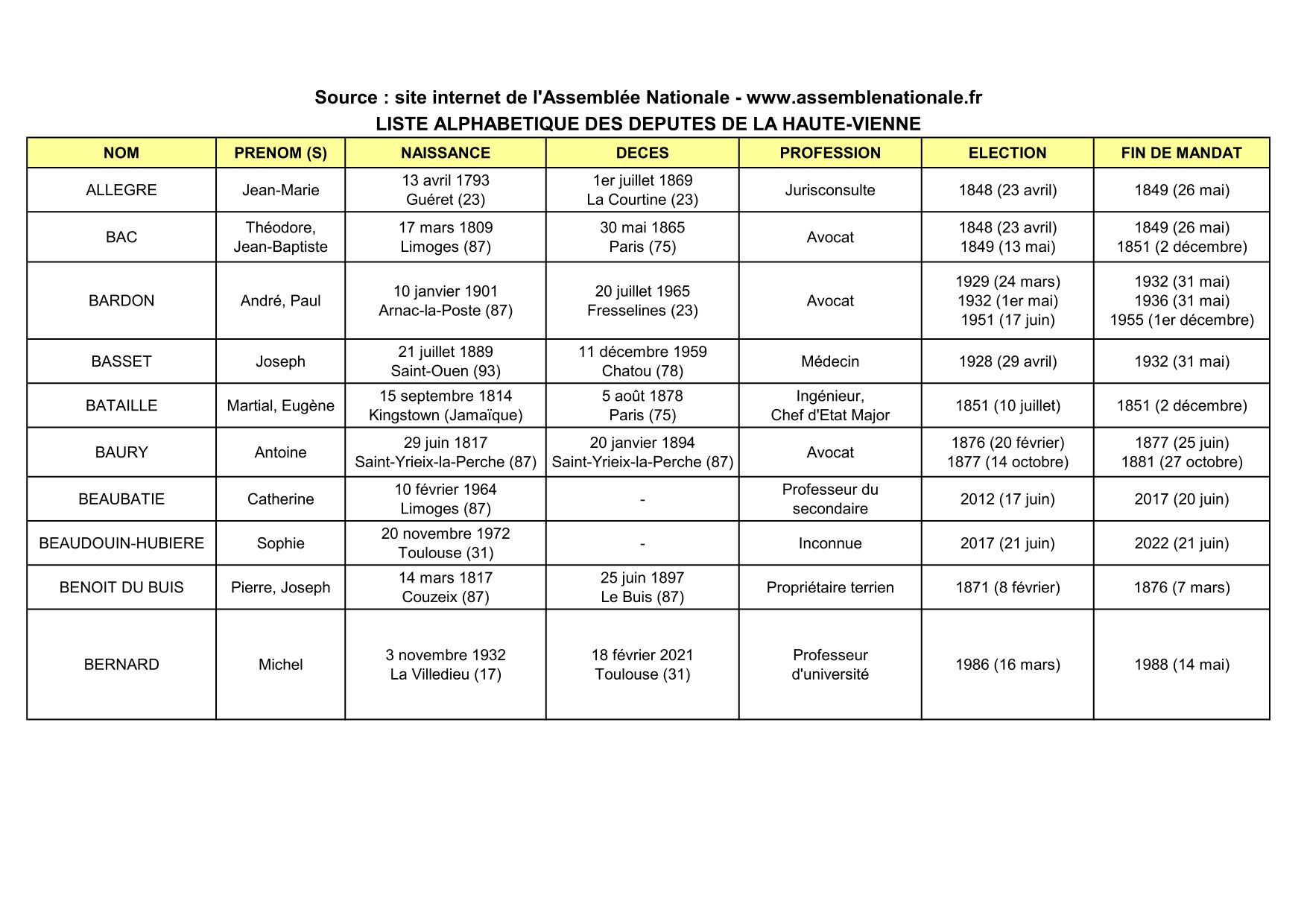 Des listes des élus haut-viennois (sénateurs, députés, présidents du Conseil général puis départemental, conseillers généraux et maires) sont consultables ci-dessous.
