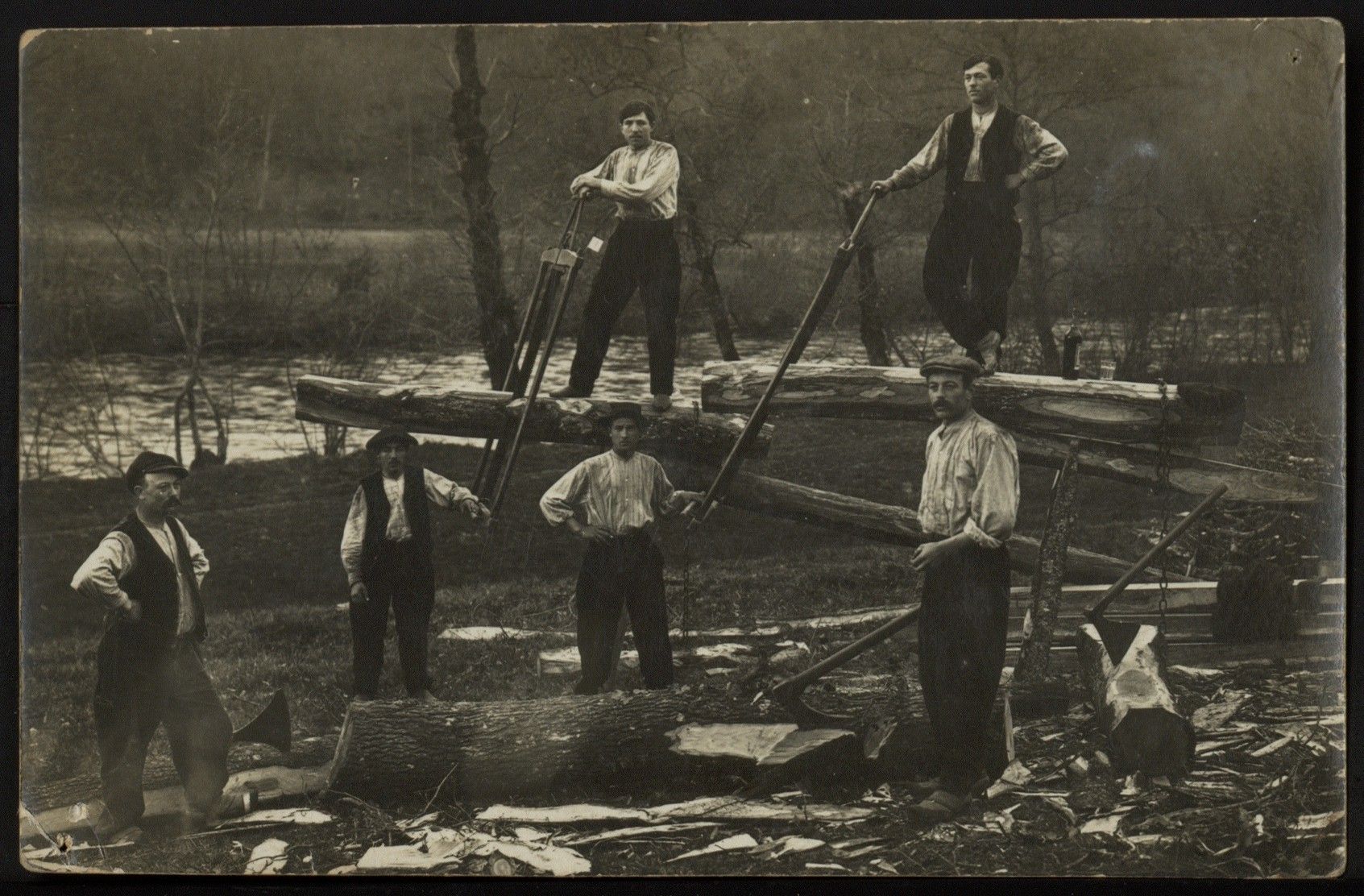 En fonction de leur place sur le tronc d'arbre, en haut ou en bas, les scieurs de long portaient un nom spécifique.