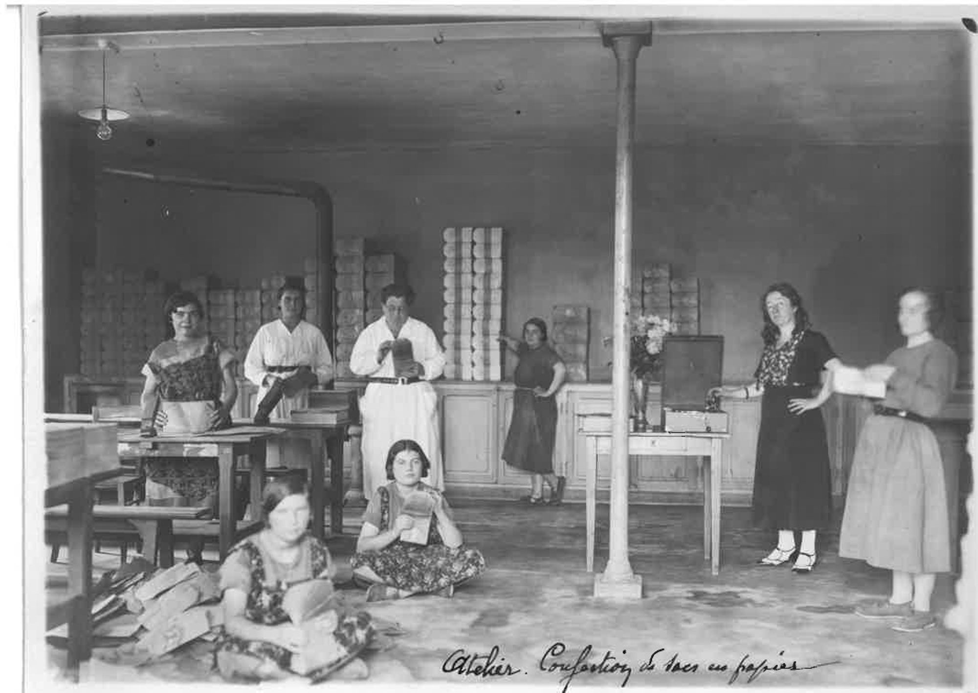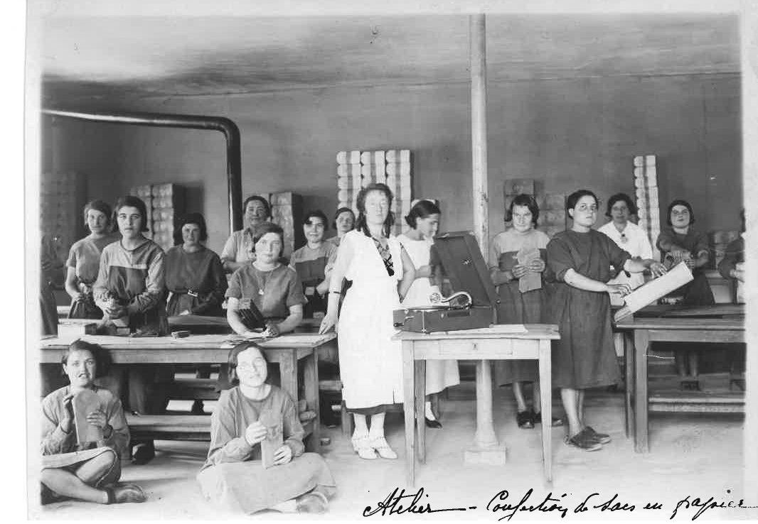 On vous emmène aujourd'hui visiter un atelier de confection de sacs en papiers, avec ces deux photos datant de 1912. À cette époque, on se préoccupait déjà de l'environnement avec du papier recyclable et biodégradable !