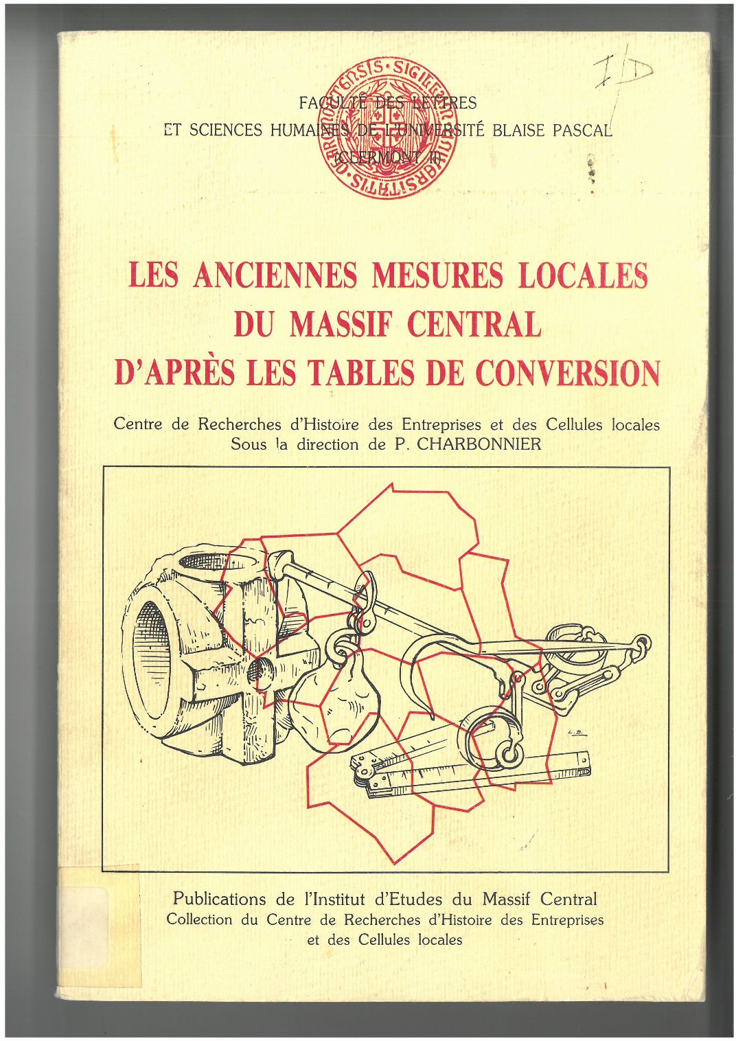 CHARBONNIER Pierre, Les anciennes mesures locales du Massif Central d'après les tables de conversion, Clermont-Ferrand, 1990 [cote BIB ID 519 - le chapitre relatif à la Haute-Vienne est consultable ci-dessous]