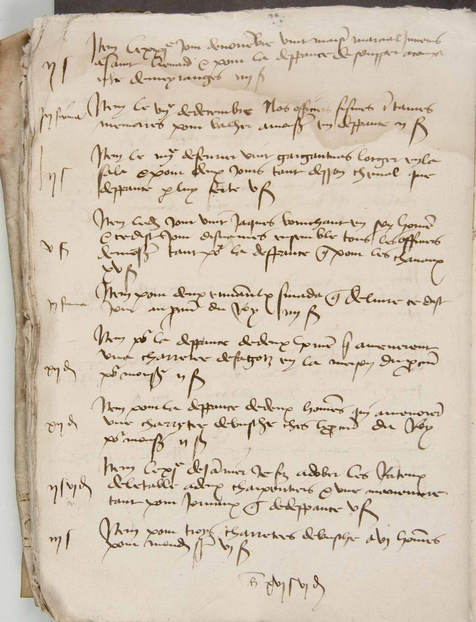 Item, le IIIIe de fevrier, vint Gargantuas lotger en la sala, et pour deux jours, tant de-sson cheval que despance par luy fecte, V s. [5 sous].