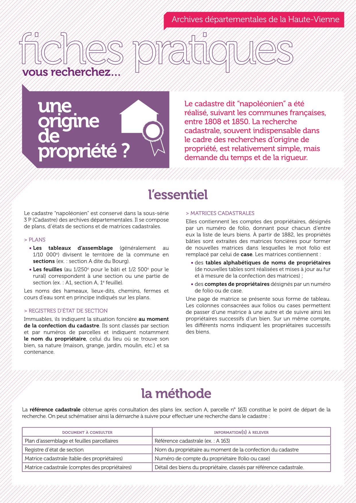 Vous pouvez également regarder les tutos vidéos réalisés par les Archives départementales de la Dordogne sur le cadastre.