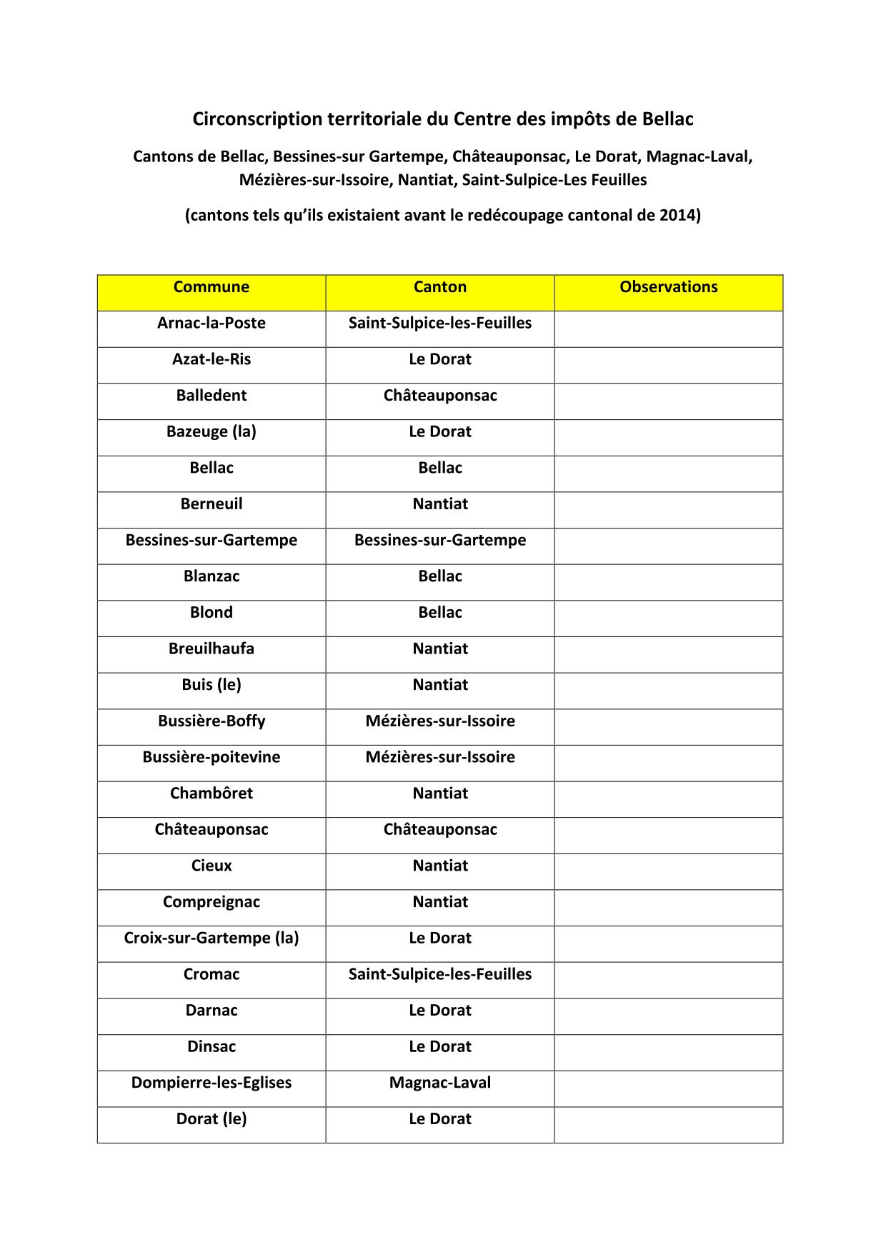 Bur. Bellac Bur. Bessines/Nantiat Bur. Limoges Ouest Bur. Limoges Ouest |