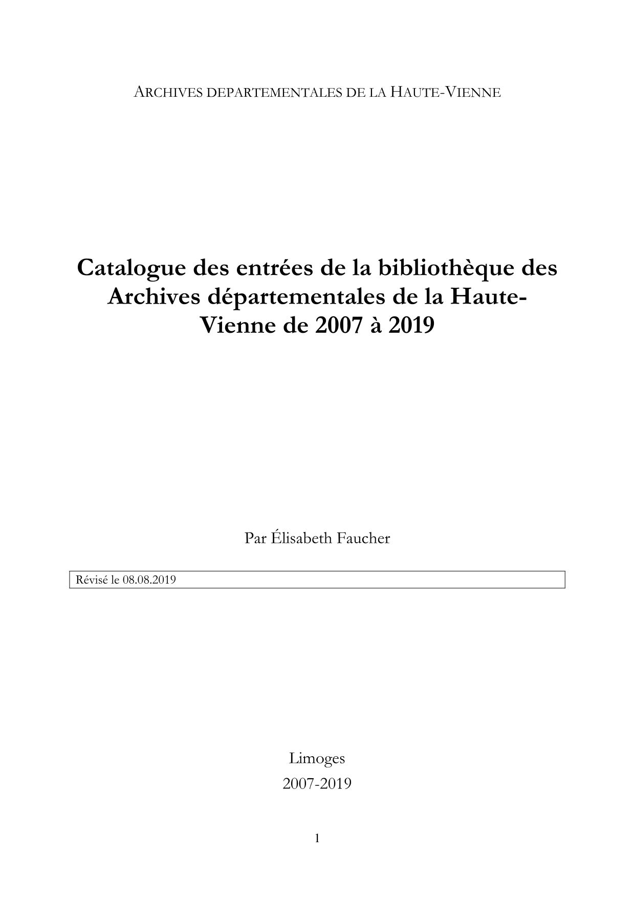 Les acquisitions cherchent à rendre cette bibliothèque aussi exhaustive que possible en matière de publications documentaires sur le Limousin, et plus particulièrement sur la Haute-Vienne. De nombreux auteurs ayant utilisé les fonds des Archives départementales font don de leur travail, publié ou inédit (voir également la sous-série 40 J).