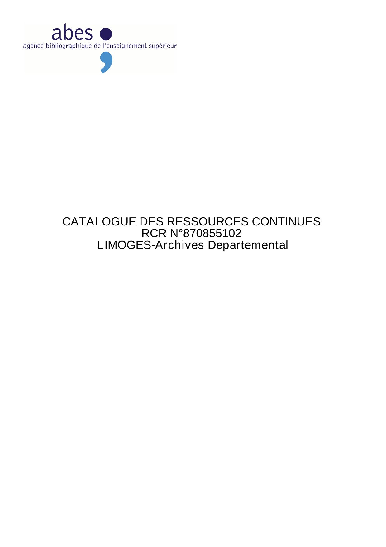 La bibliothèque de la Société archéologique et historique du Limousin comporte une riche collection de périodiques complétant la collection des archives départementales.