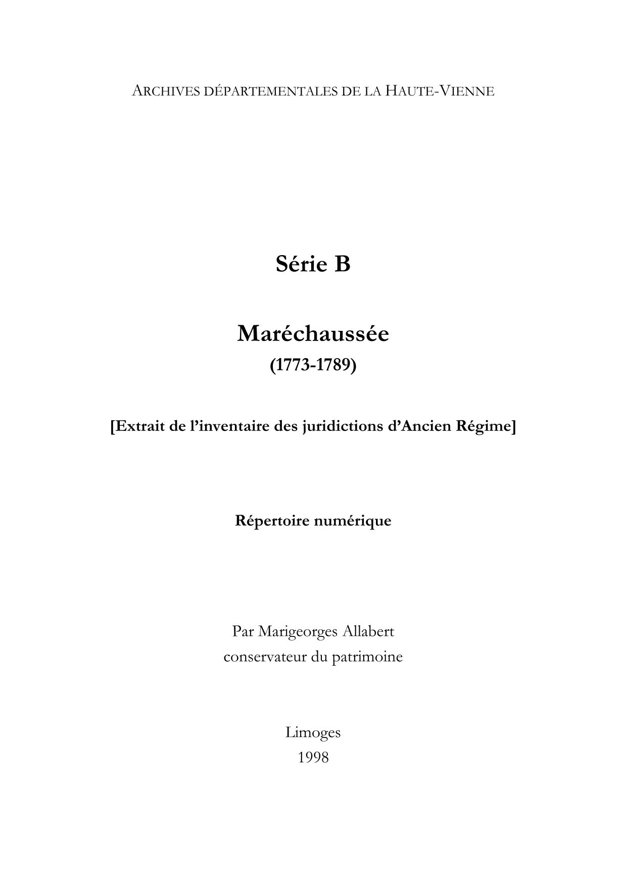 Répertoire numérique de diverses juridictions, par Marigeorges Allabert, 1998, 95 p. dact. Répertorie les registres (audiences et greffe) de la juridiction (p. 48).