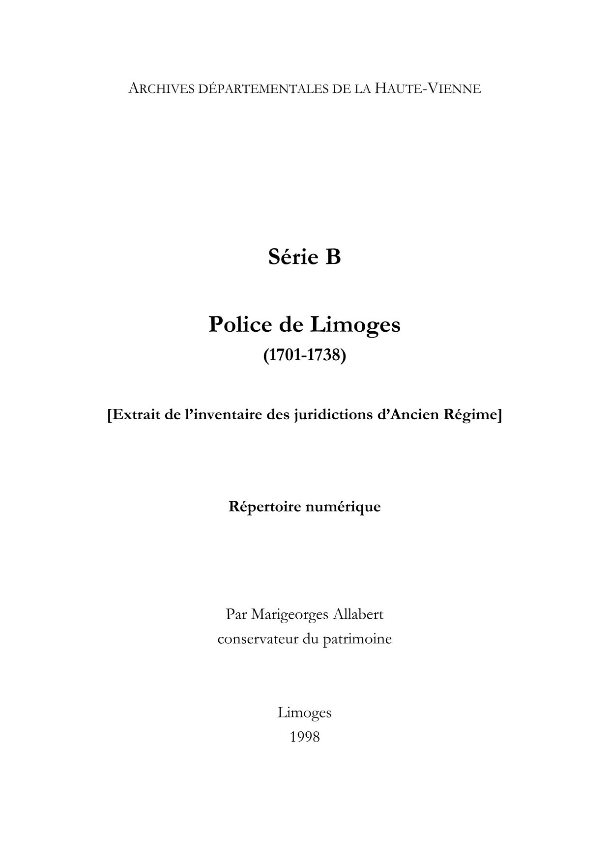 Par lettres patentes de septembre 1784, les offices de lieutenant général et de procureur en la sénéchaussée et siège présidial sont désunis de ceux de lieutenant général et de procureur de la police de Limoges et réunis au corps municipal de Limoges.