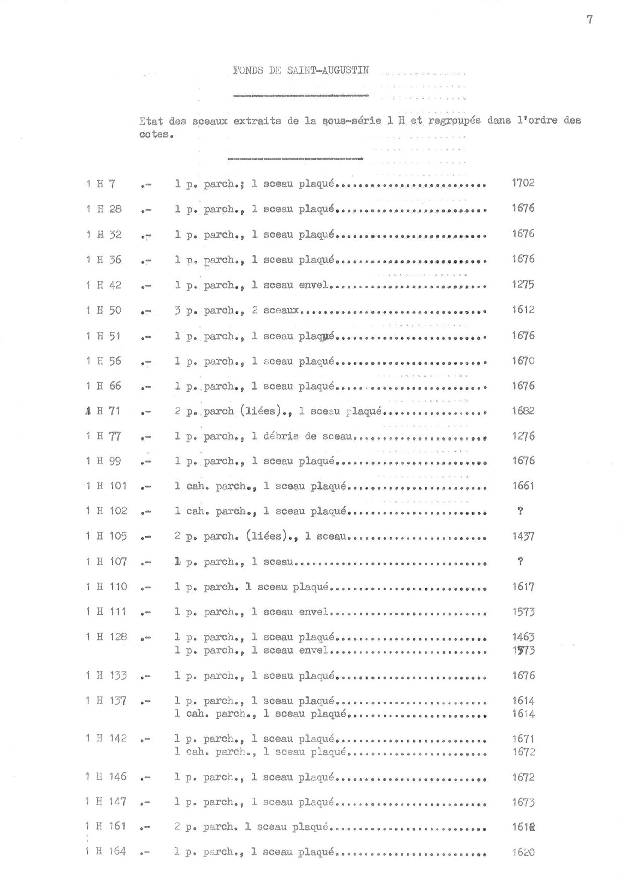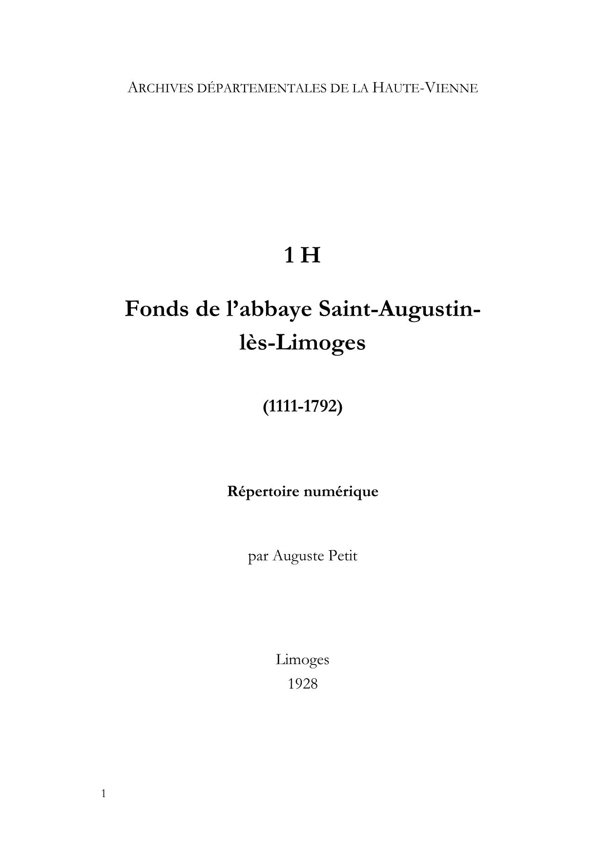 1 H. Répertoire numérique, [par A. Petit], 1928, 15 p. dactyl.