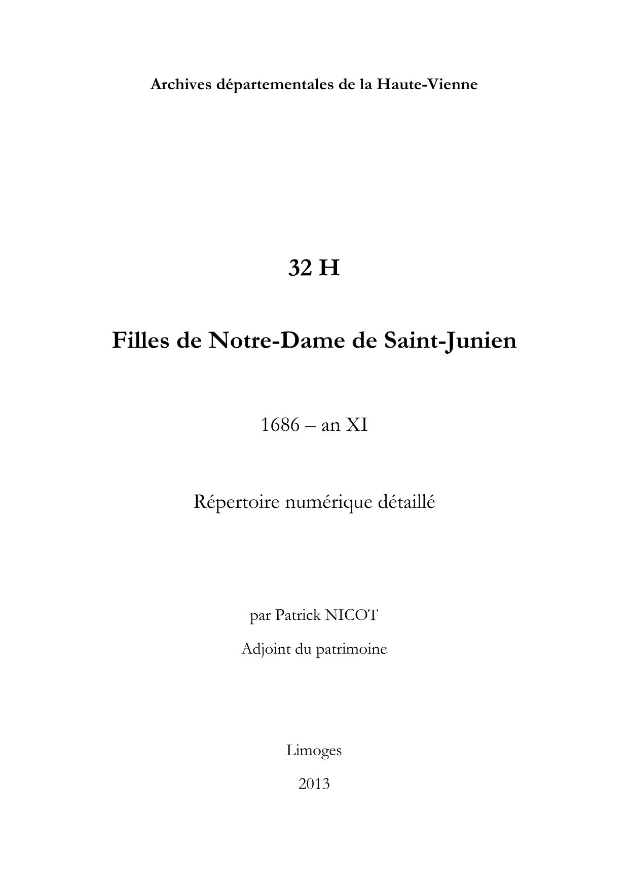 32 H. Répertoire numérique détaillé, par P. Nicot, 2013, 7 p. dact.