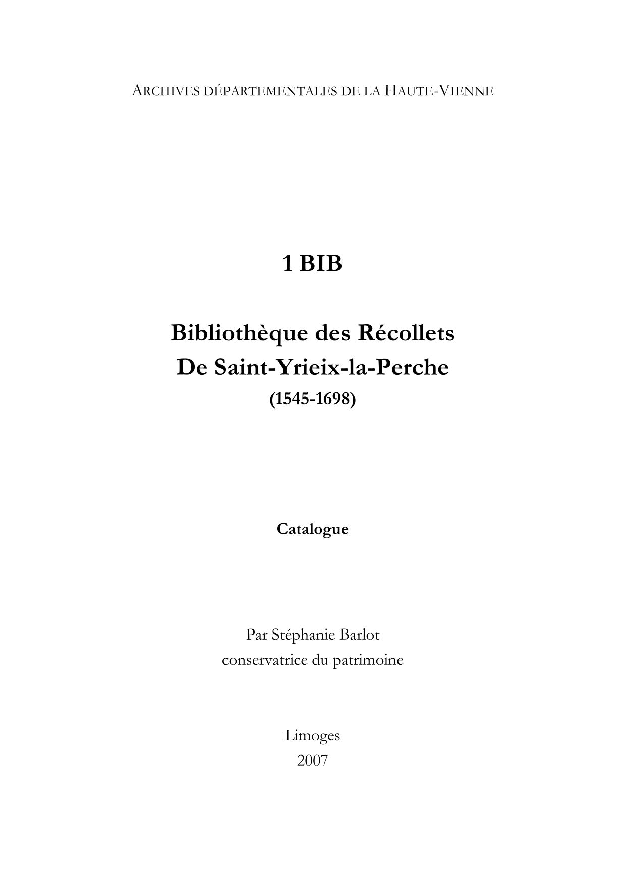Récollets de Saint-Yrieix (1 BIB)