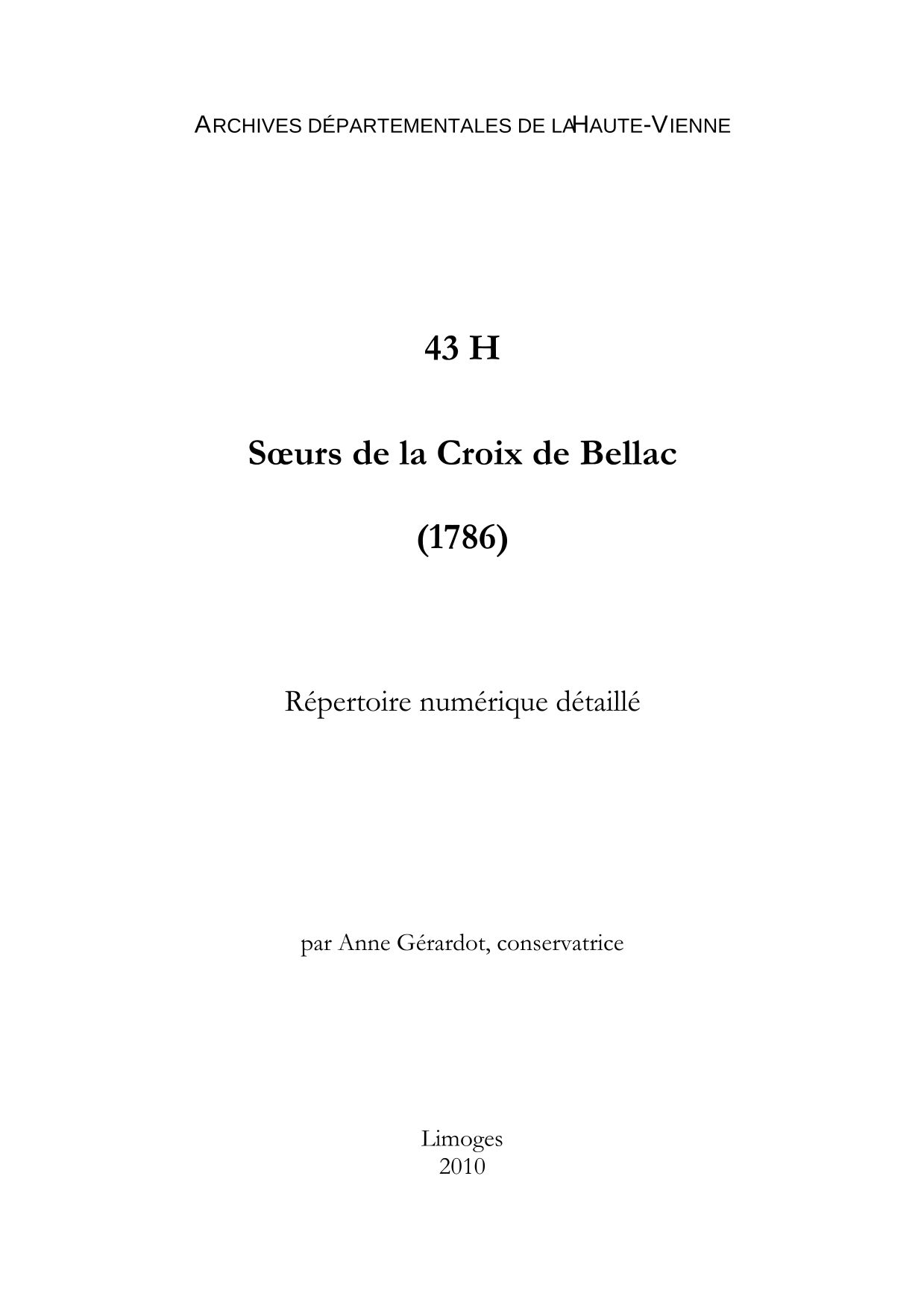 43 H. Répertoire numérique détaillé, par A. Gérardot, 2010, 3 p. dact.