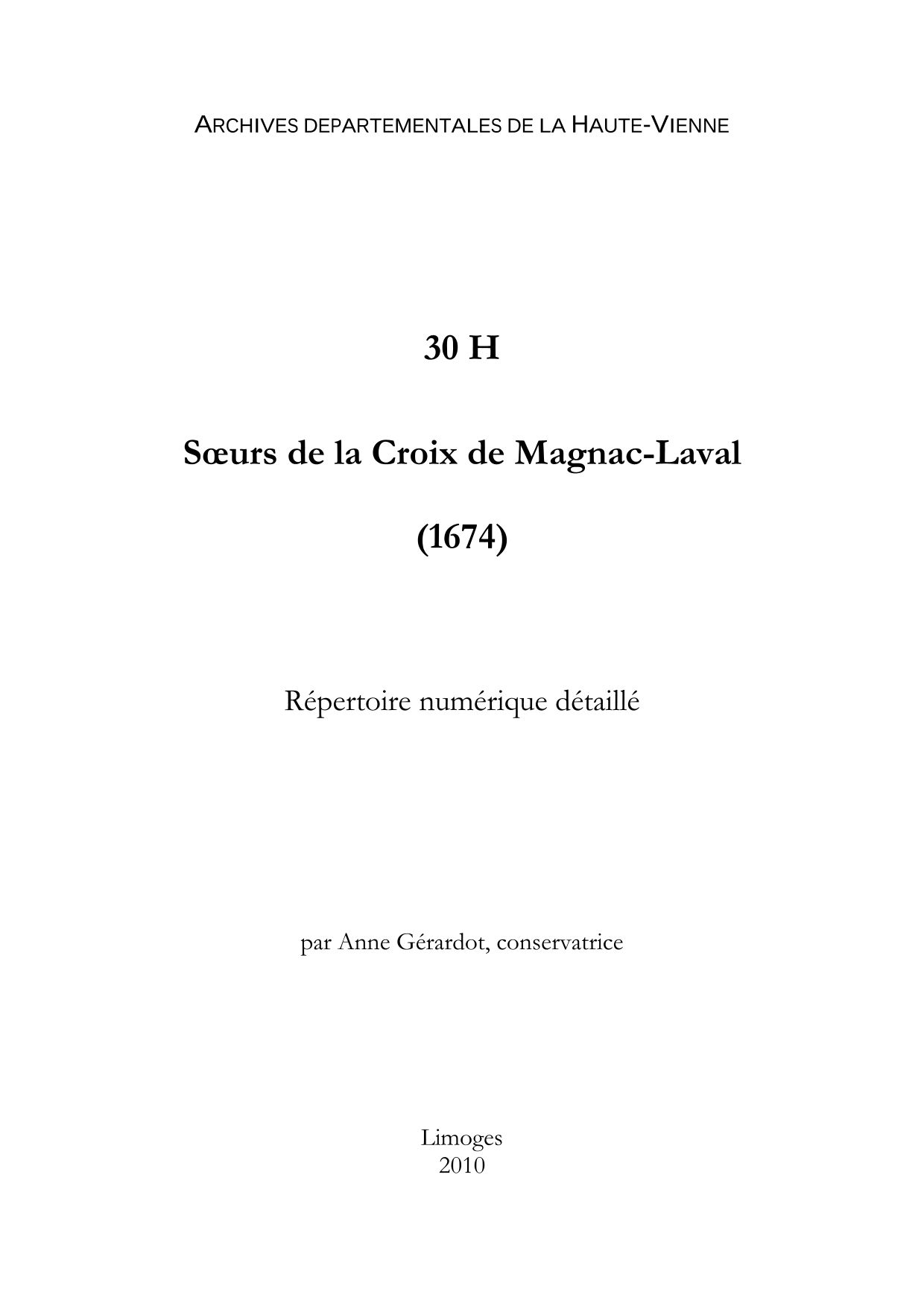 30 H. Répertoire numérique détaillé, par A. Gérardot, 2010, 2 p. dact.