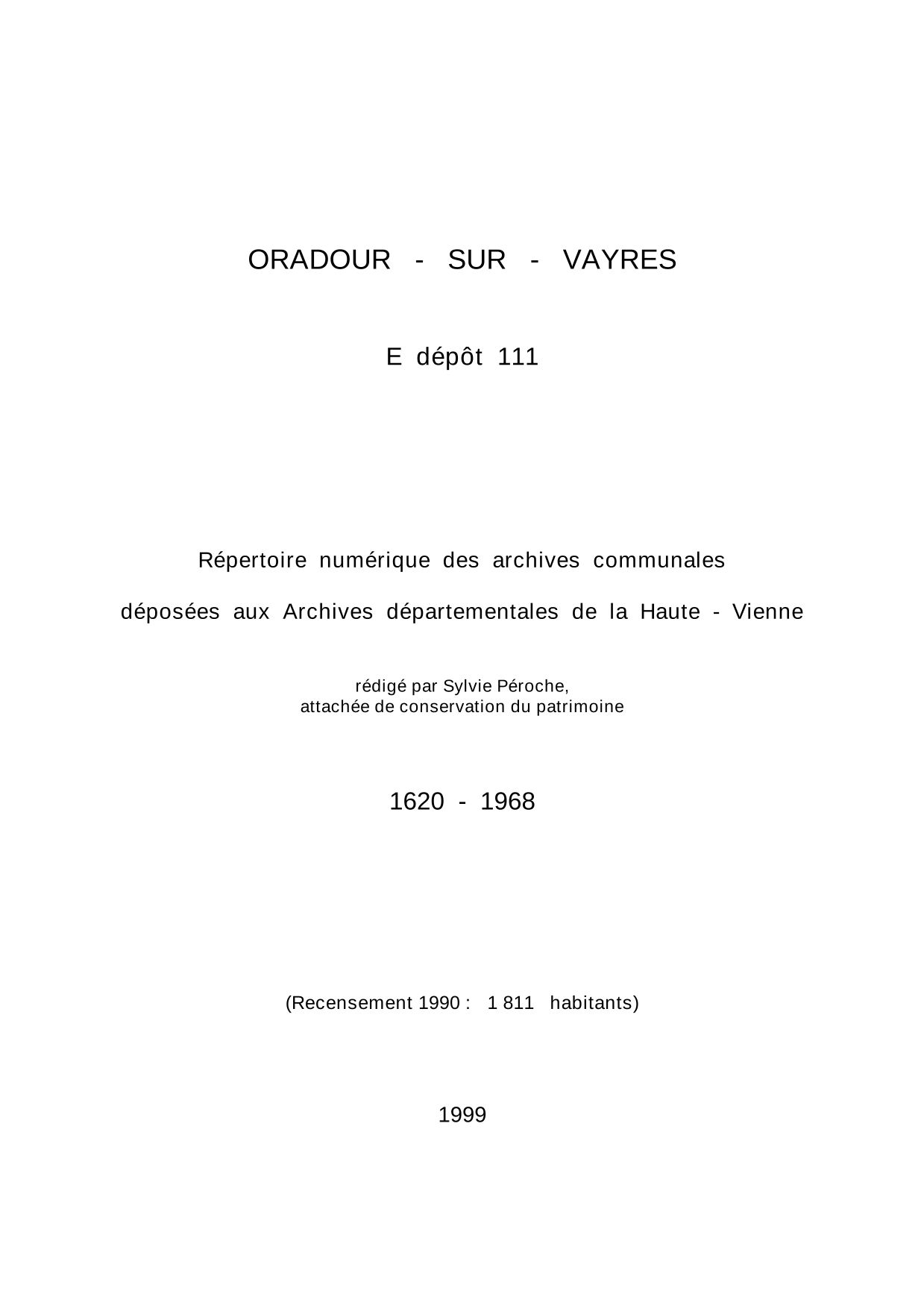 Commune d'Oradour-sur-Vayres. Répertoire numérique des archives communales déposées aux Archives départementales de la Haute-Vienne, par S. Péroche, 1999, 18 p. dact.