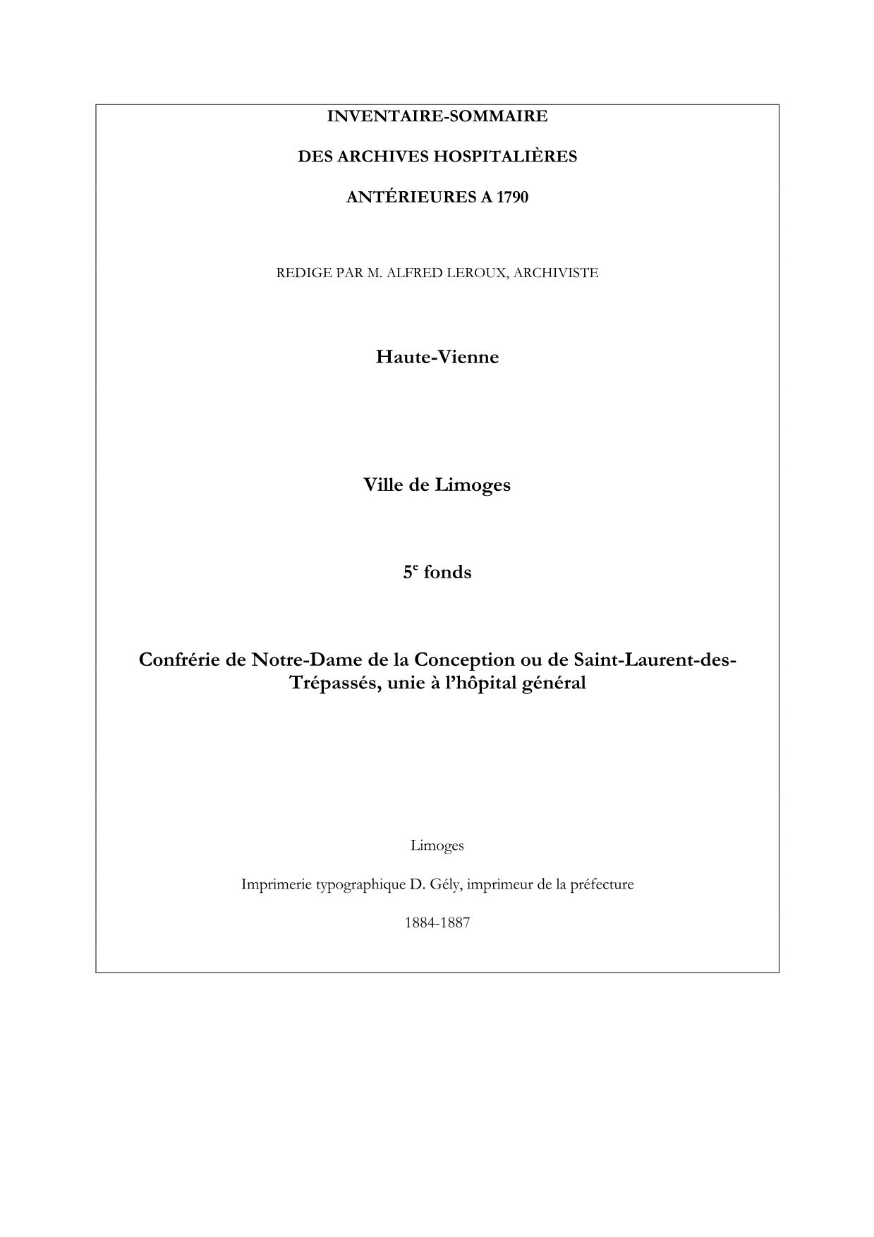 Confrérie de Notre-Dame de la Conception ou de Saint-Laurent des Trépassés (H SUP LIMOGES 5)