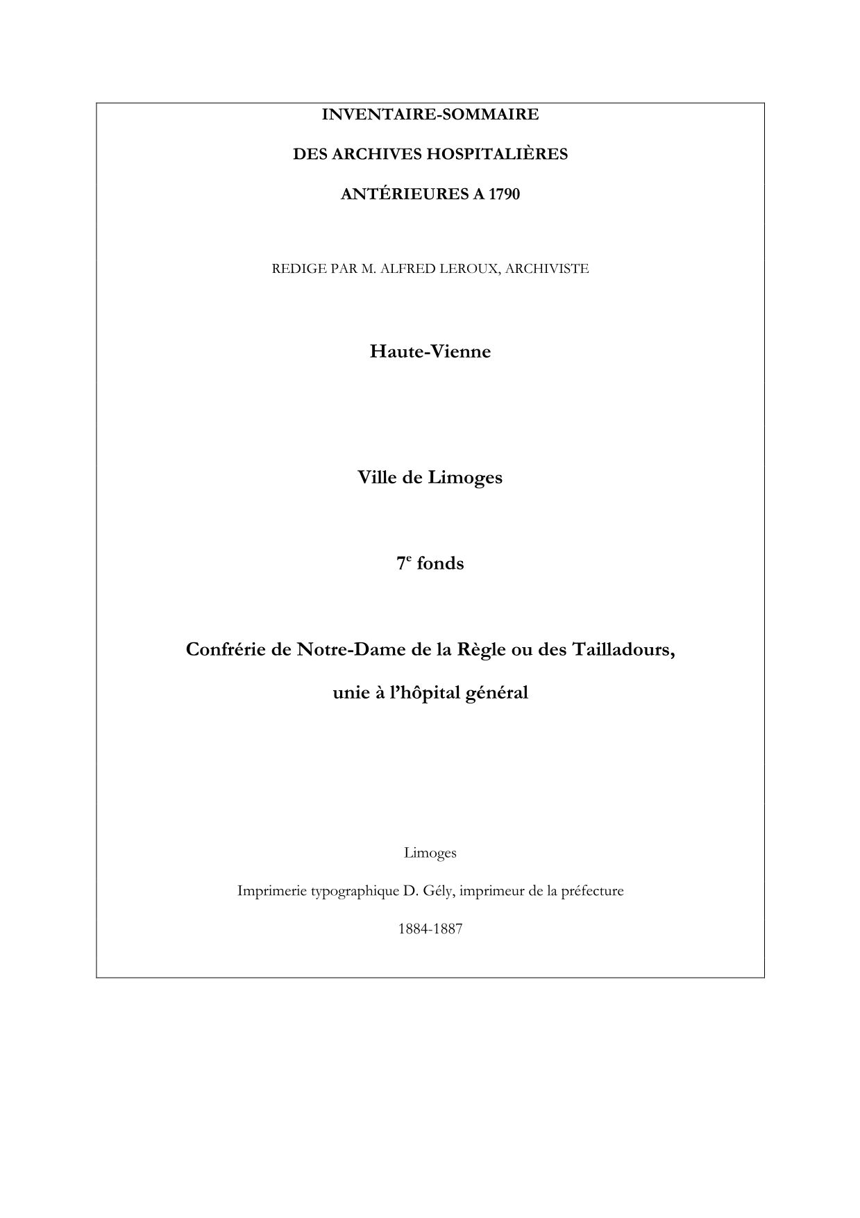 Confrérie de Notre-Dame de la Règle ou des Tailladours (H SUP LIMOGES 7)