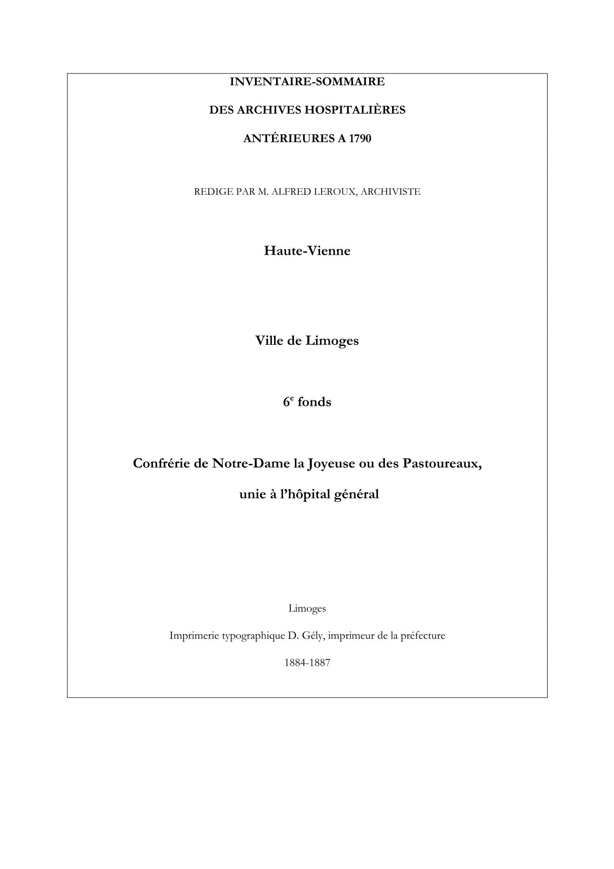 Confrérie de Notre-Dame la Joyeuse ou des Pastoureaux (H SUP LIMOGES 6)
