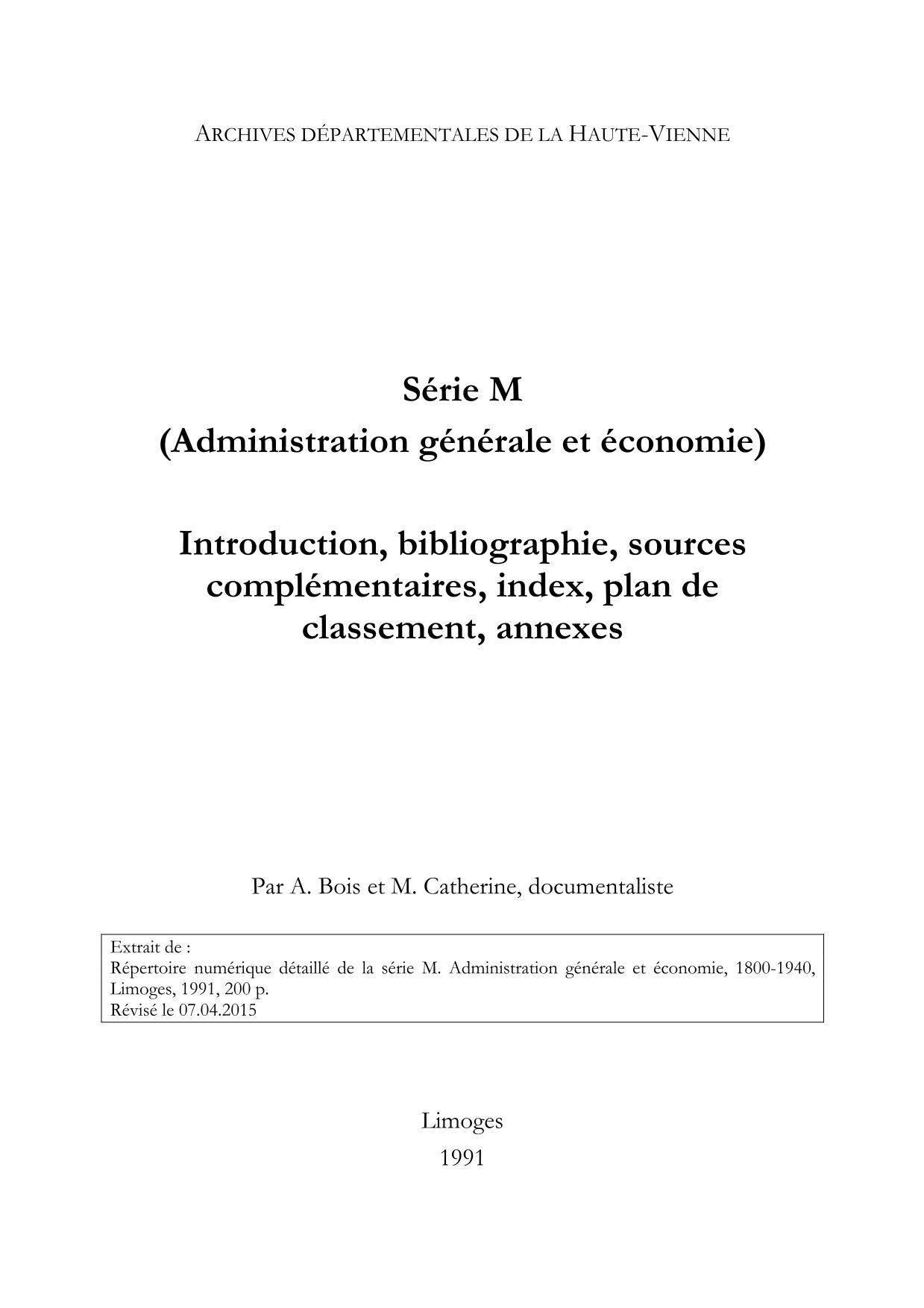 Cette série est primordiale pour toute étude historique de notre département, de la Révolution à la Seconde guerre mondiale. En effet les dossiers qu'elle contient proviennent majoritairement de la préfecture, dont on sait qu'elle a joué un rôle essentiel, aux XIXe et XXe siècles, dans une multitude de domaines : vie politique, ordre public, administration, économie, statistique, etc. Il s'y trouve aussi des dossiers d'autres services de l'Etat (direction de l'Agriculture, Eaux et forêts...), qui furent fondus dans les premiers dès leur versement aux archives, de sorte qu'il est aujourd'hui impossible de les en distinguer.