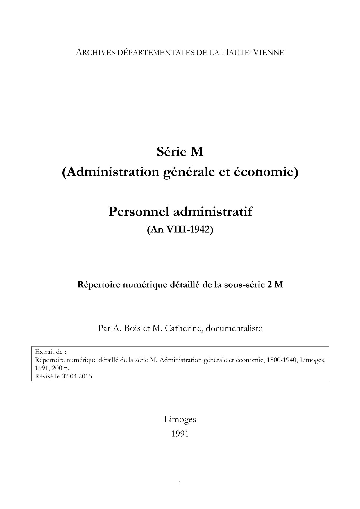 2 M. Répertoire numérique détaillé, par A. Bois et M. Catherine (extrait du répertoire imprimé en 1991, p. 45-49).