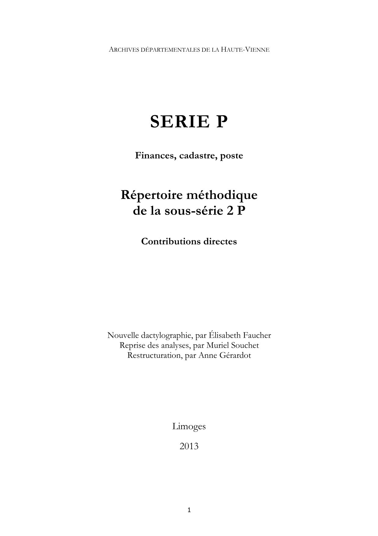 2 P. Répertoire méthodique, par A. Bois, 1956, et G. Prudhomme, 2004, dact.