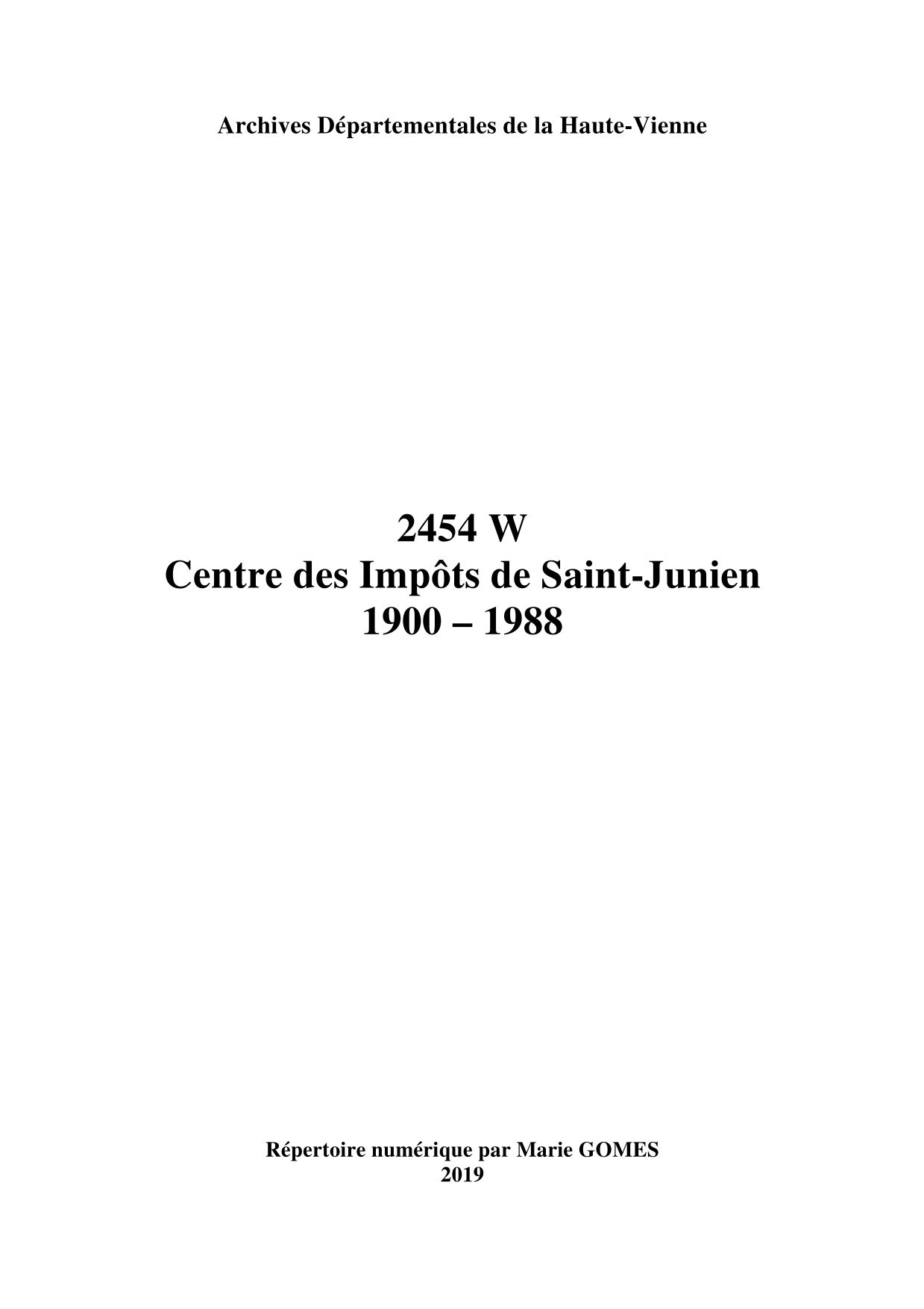 Bureau de Saint-Junien Après 1940, cf. versement 2454 W pour les déclarations de successions. Consulter l'instrument de recherche (3 Q 434 - déclarations de successions - 1790-1939) (3.3 Mo) Versement 2454 W (49.9 Ko)