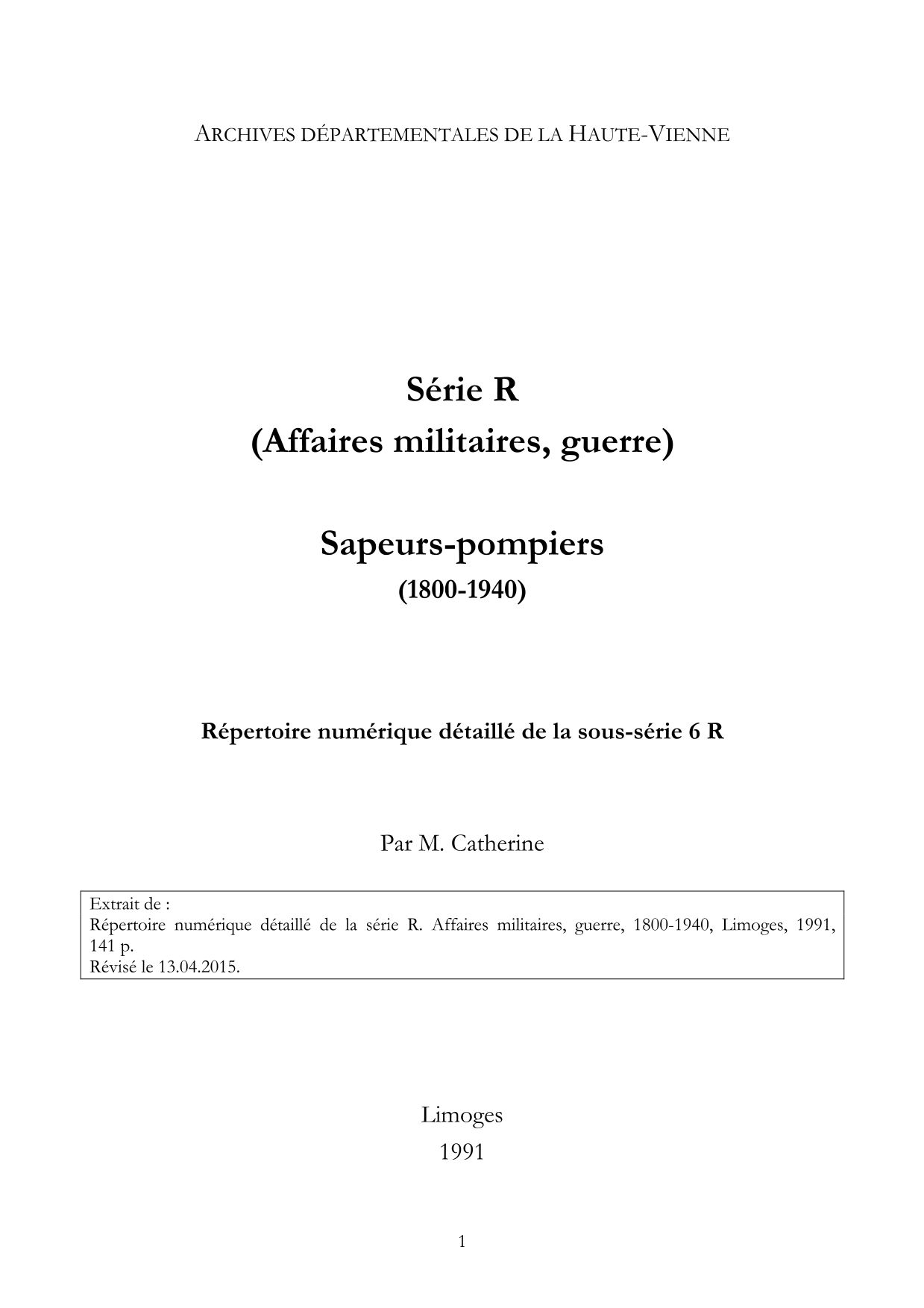 6 R. Répertoire numérique détaillé de la sous-série 6 R, par M. Catherine, 1991, 2 p.