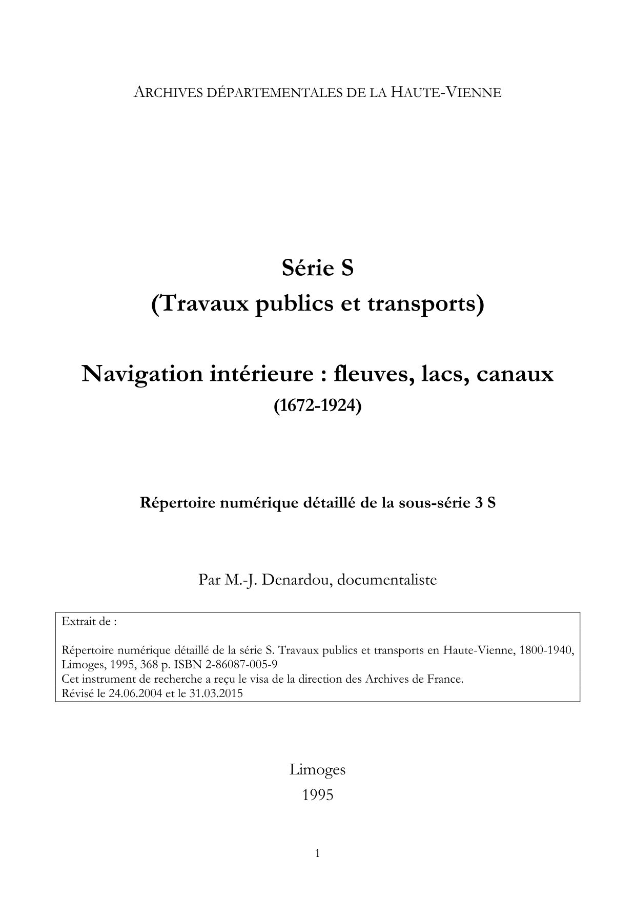 3 S. Répertoire numérique détaillé, par M.-J. Denardou, 1995, impr.