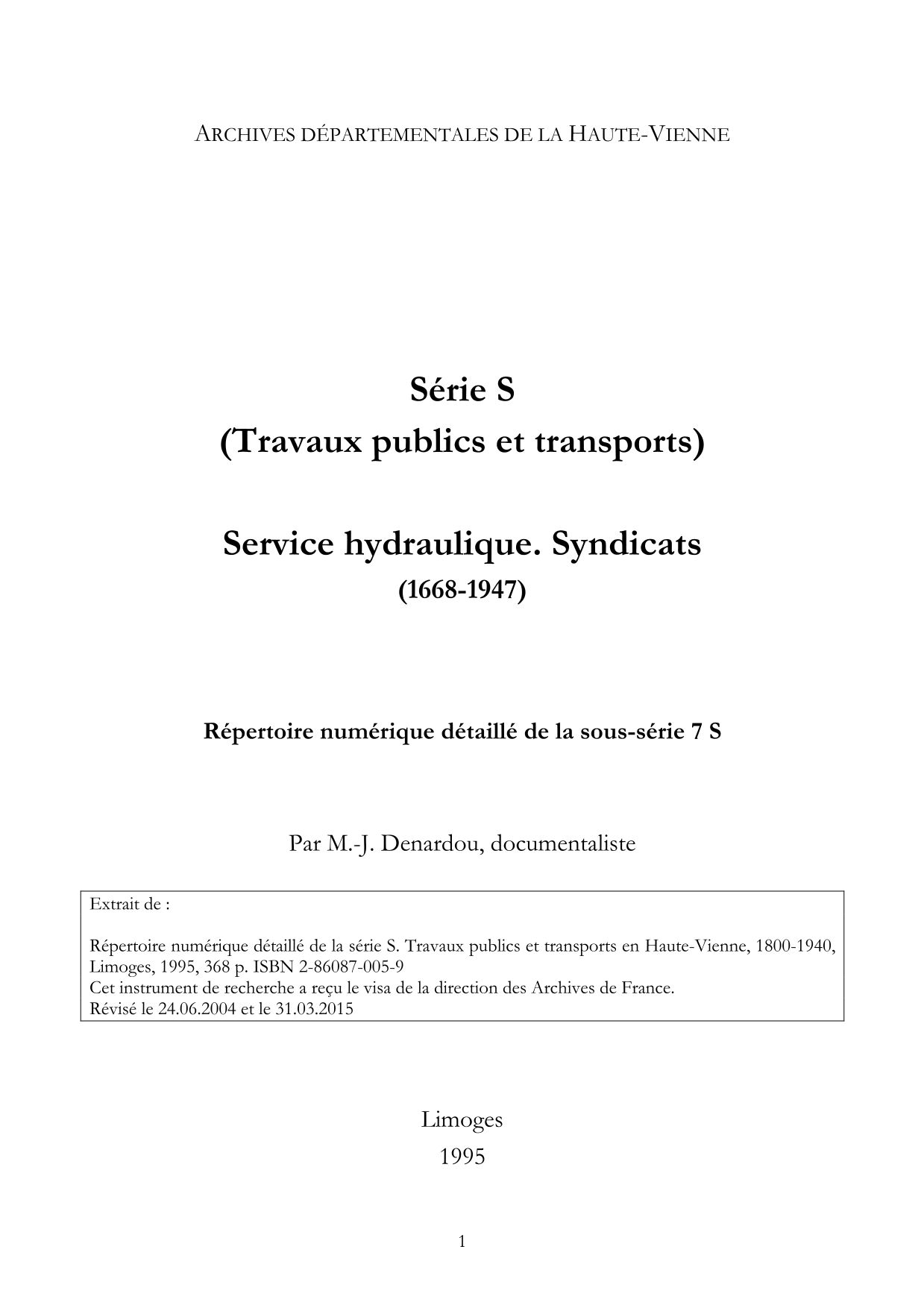7 S. Répertoire numérique détaillé, par M.-J. Denardou, 1995, impr.