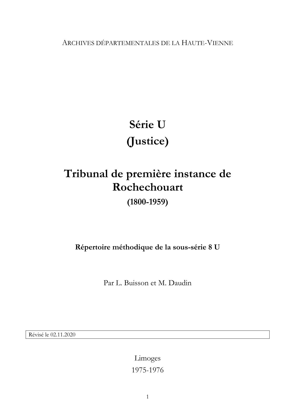 8 U. Répertoire numérique, [par L. Buisson et M. Daudin], 1975-1976, 52 p. dact.
