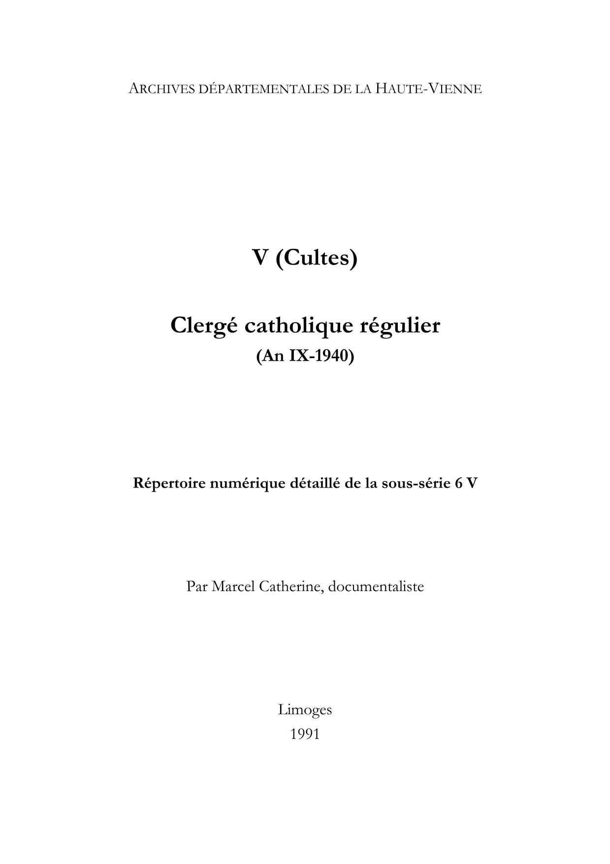 6 V. Répertoire numérique détaillé de la sous-série 6 V, par M. Catherine, 1991, 13 p. dact.