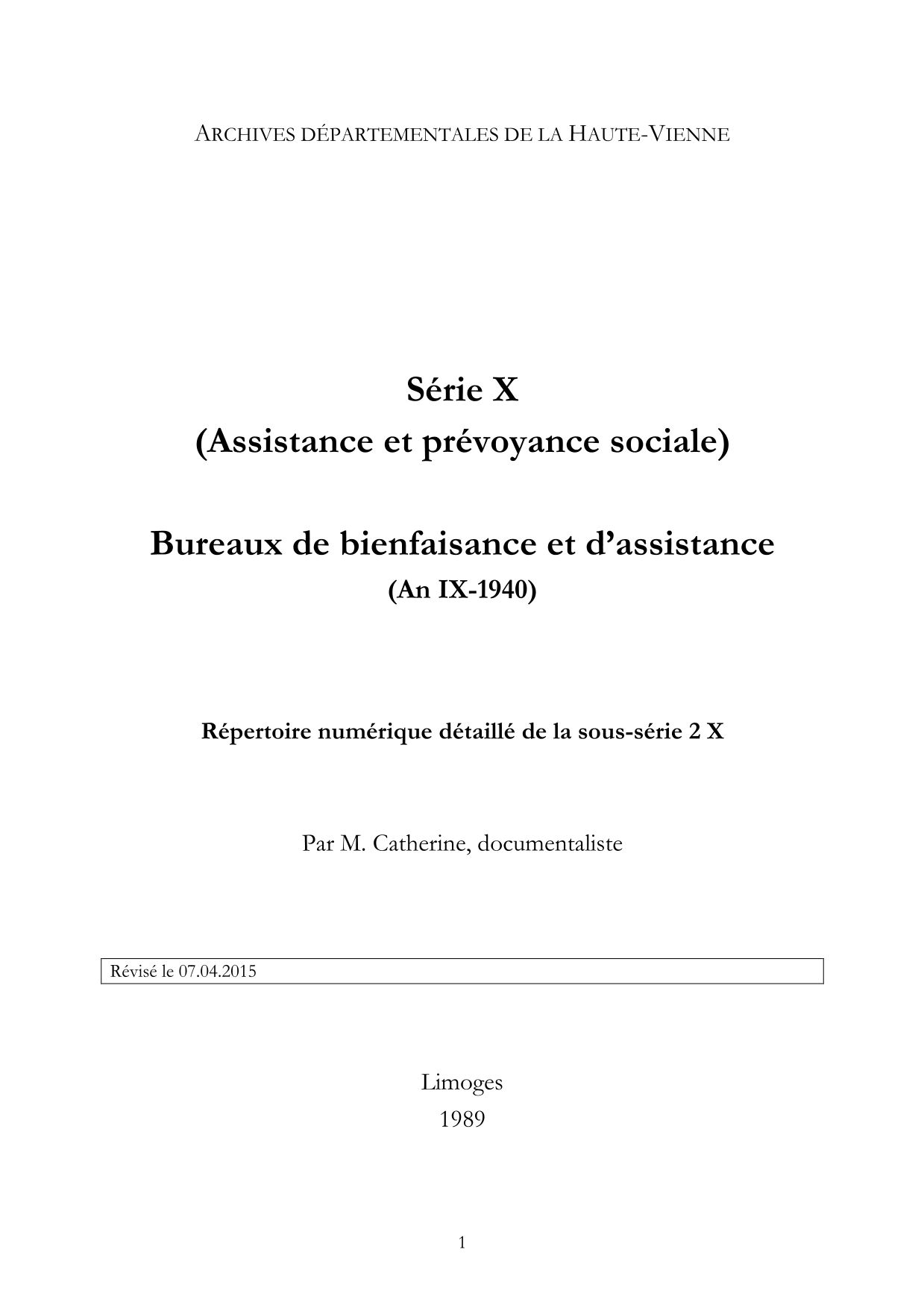 2 X. Répertoire numérique détaillé de la sous-série 2 X, par M. Catherine, 1989, 6 p. dact.