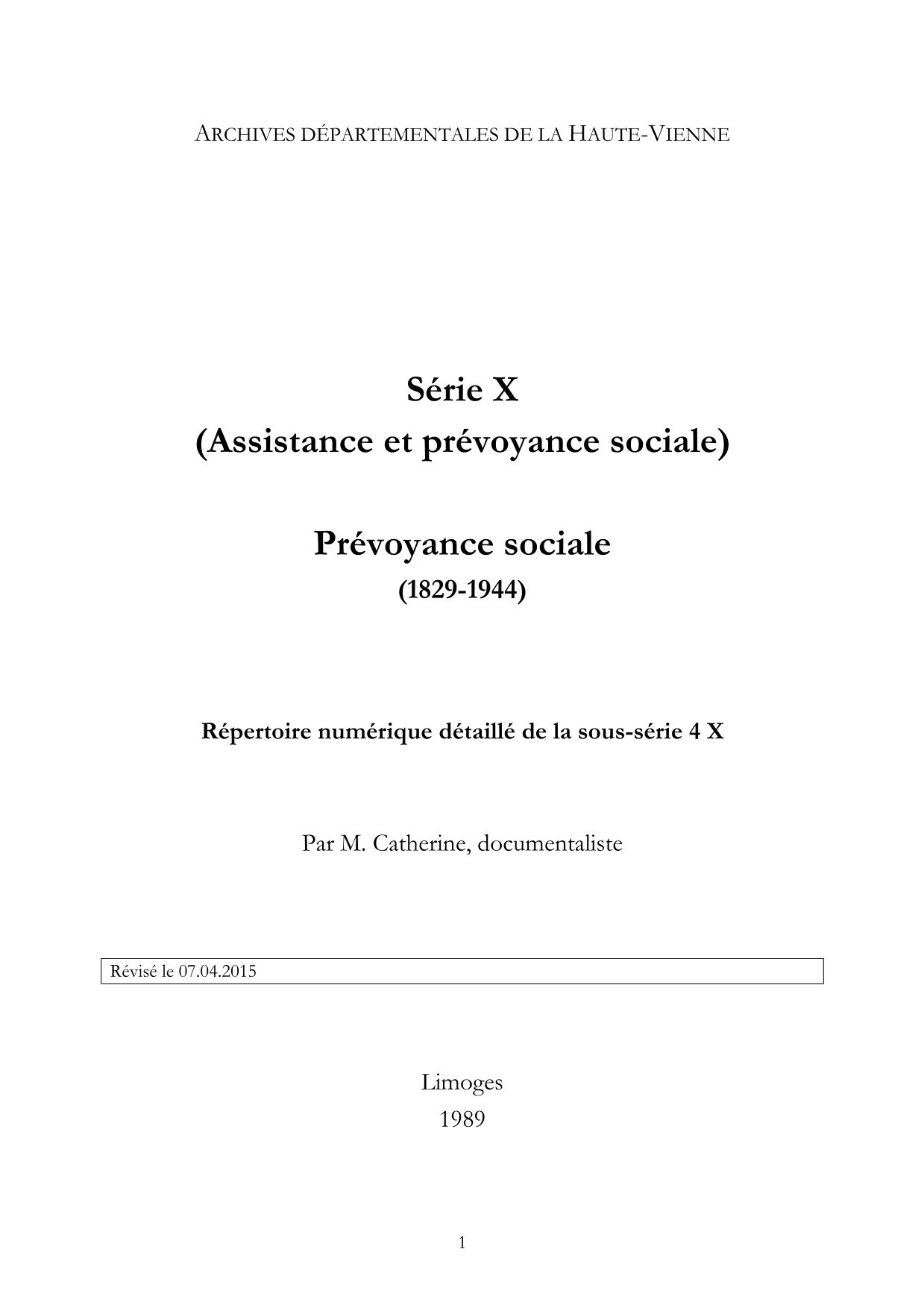4 X. Répertoire numérique détaillé de la sous-série 4 X, par M. Catherine, 1989, 26 p. dact.