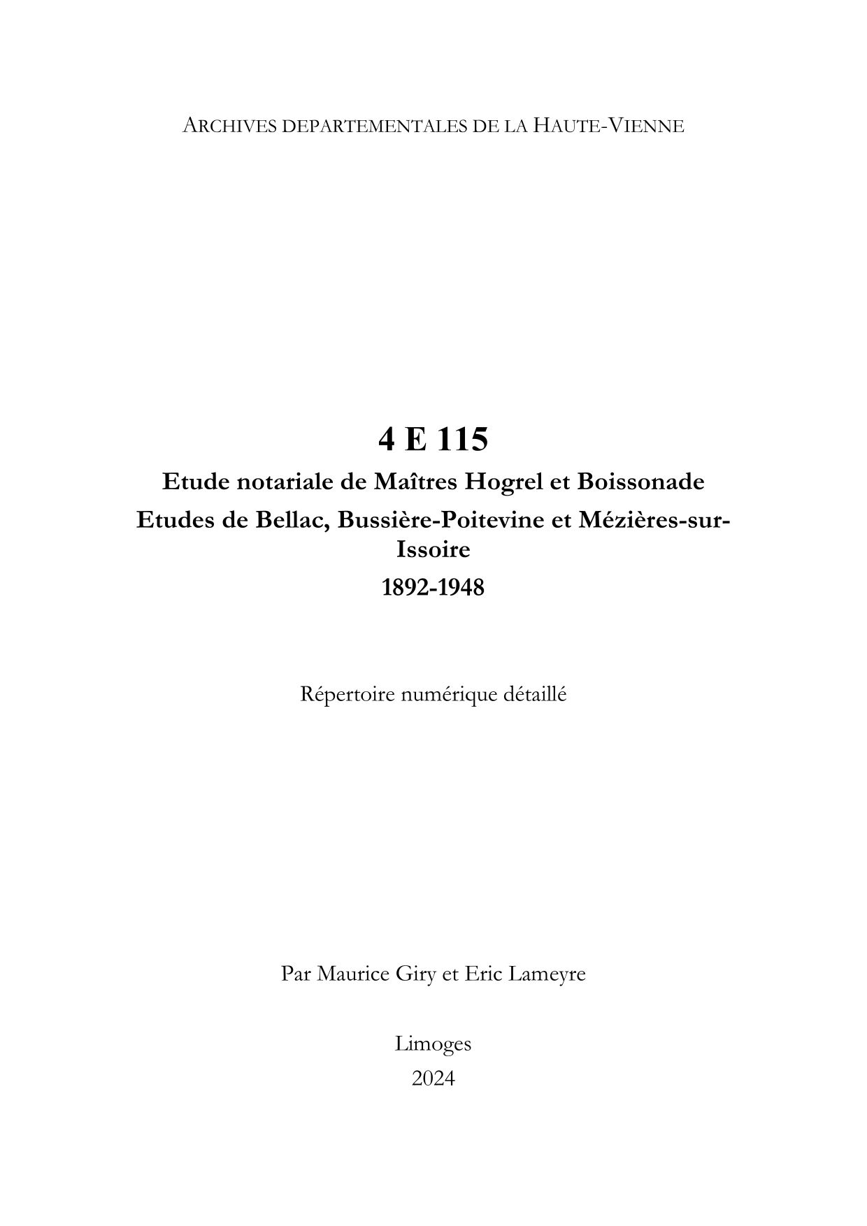 4 E 115. Etude de Maîtres Hogrel et Boissonade, Etudes de Bellac, Bussière-Poitevine et Mézières-sur-Issoire