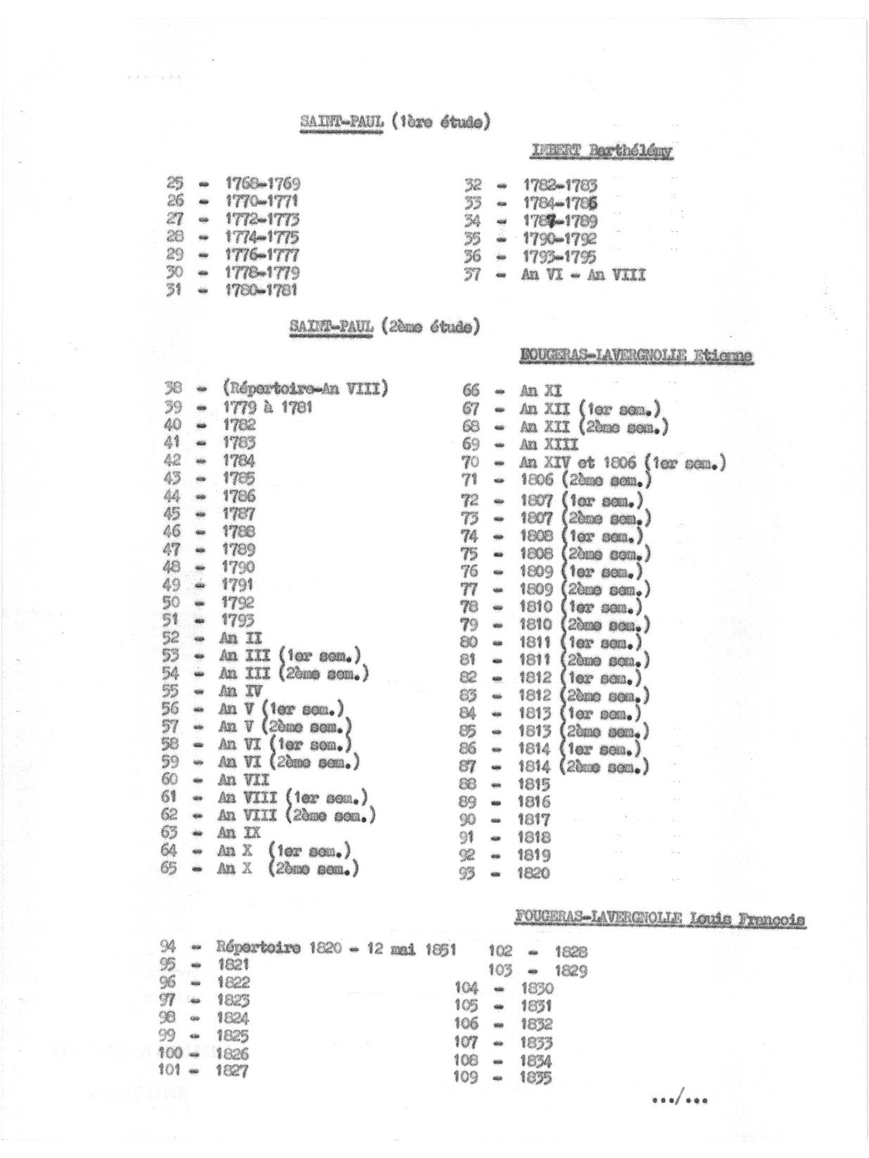 4 E 40. Études notariales de Saint-Paul et Eyjeaux, répertoire numérique, s.d., 2 p.