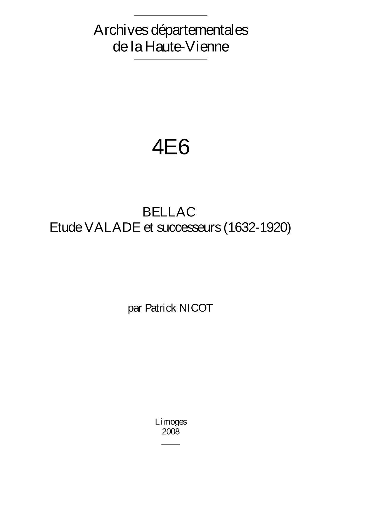 4 E 6. Bellac. Etude Valade et successeurs (1632-1920), répertoire numérique, s.d., repris par Patrick Nicot, 2008, 31 p.