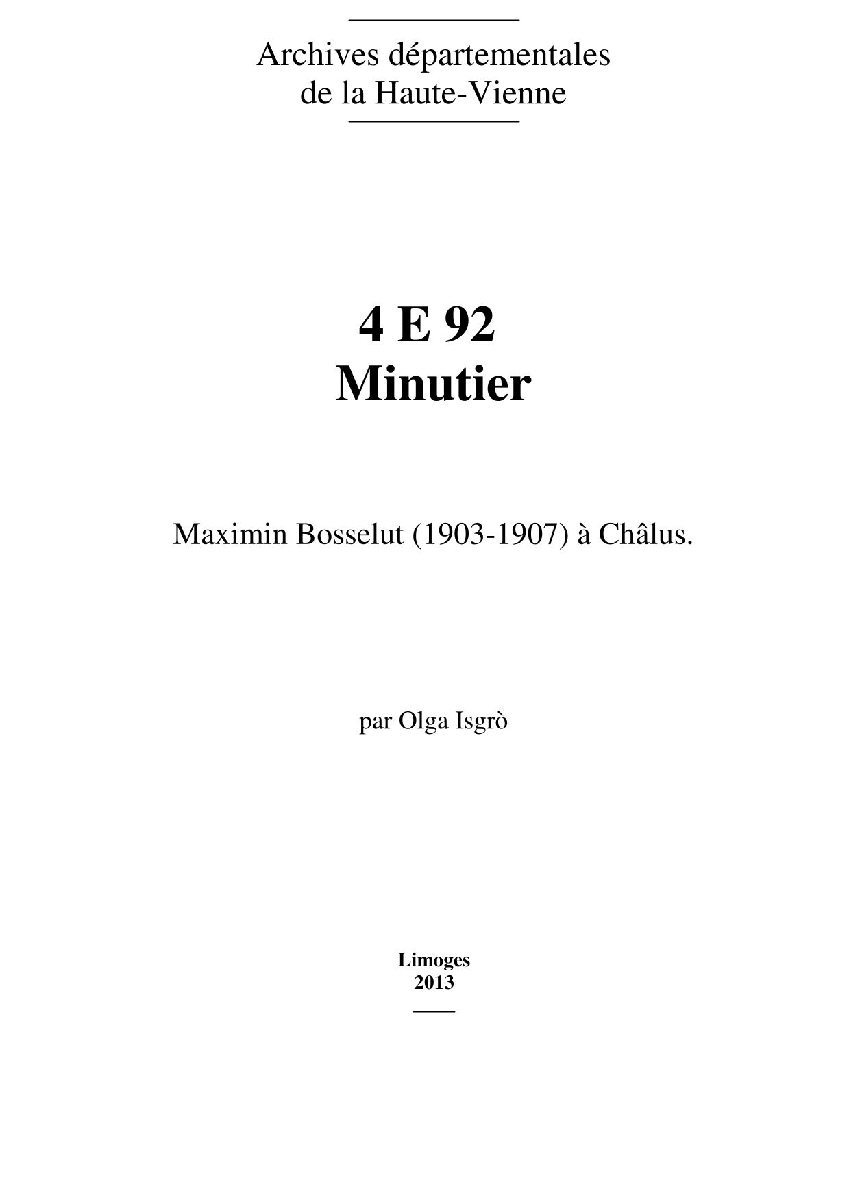 4 E 92. Étude notariale de Châlus, répertoire numérique par Olga Isgrò , 2013, 6 p.