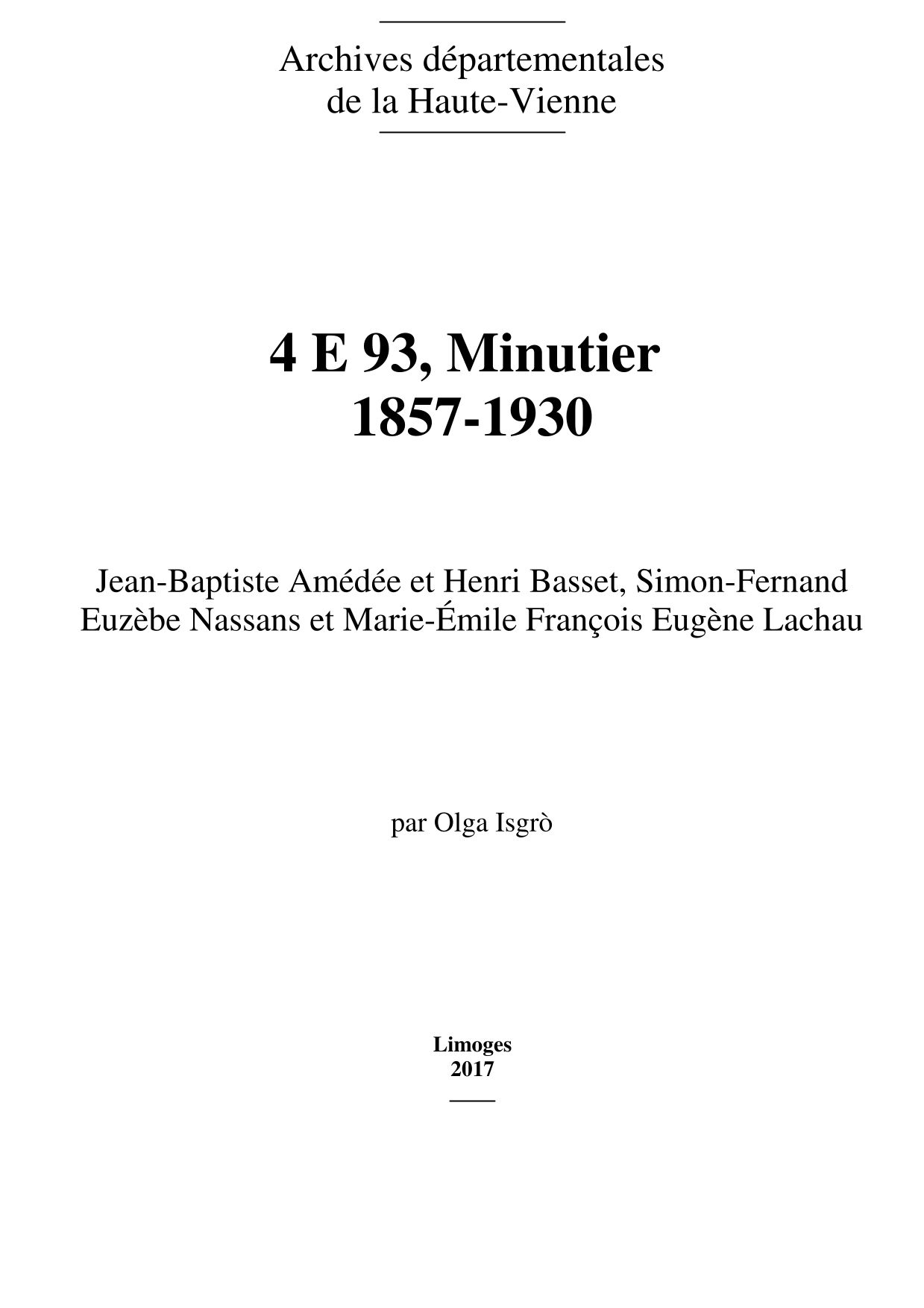 4 E 93. Étude notariale de Limoges, répertoire numérique par Olga Isgrò , 2017, 21 p.