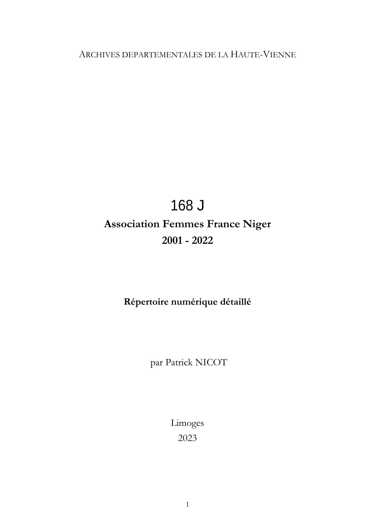 168 J. Répertoire numérique détaillé, par P. Nicot, 2023, 6 p.