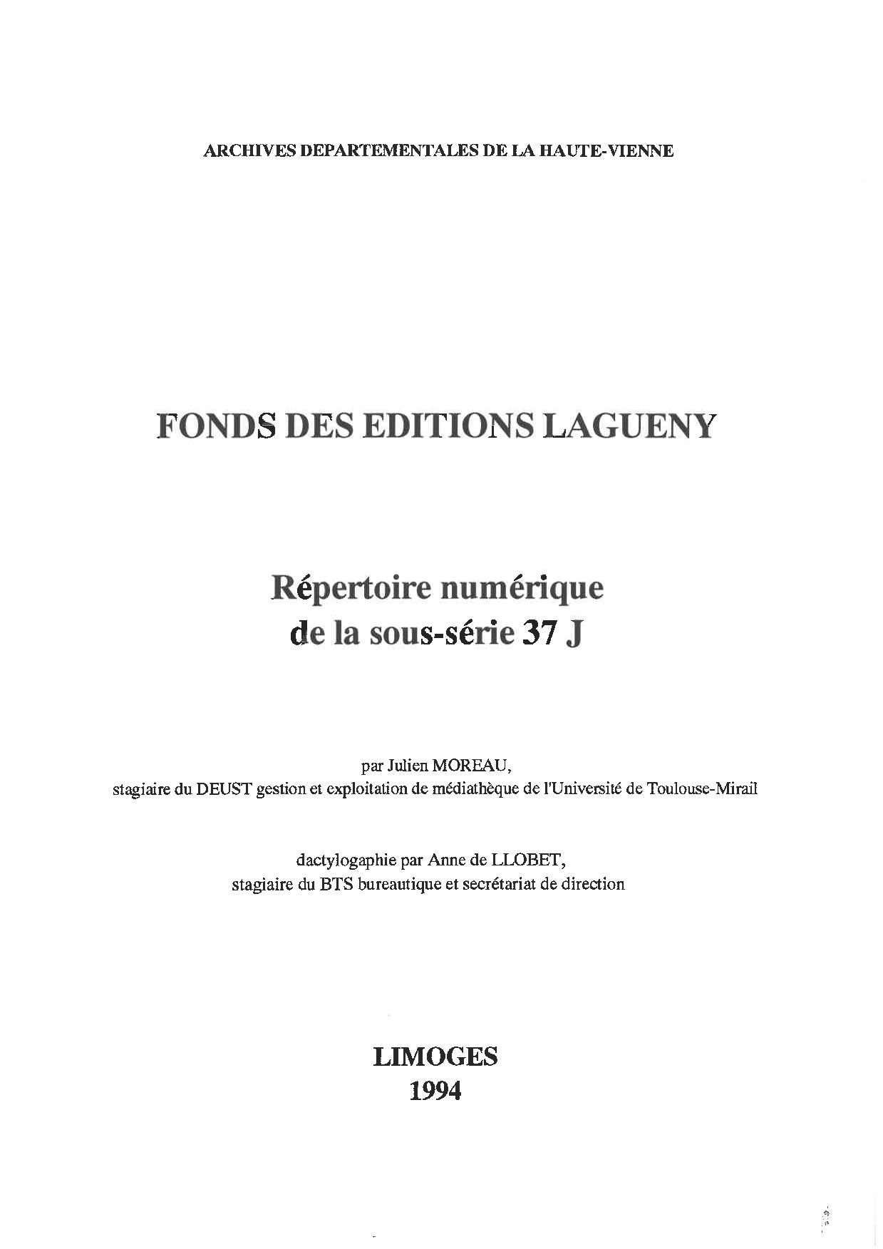 Archives des éditions musicales Lagueny (Limoges) : correspondance, comptabilité, relations avec les auteurs, compositeurs et interprètes, publications des œuvres, partitions. Papiers personnels de Jean et Henry Lagueny. Ces documents ont été donnés par la famille Lagueny en 1985.