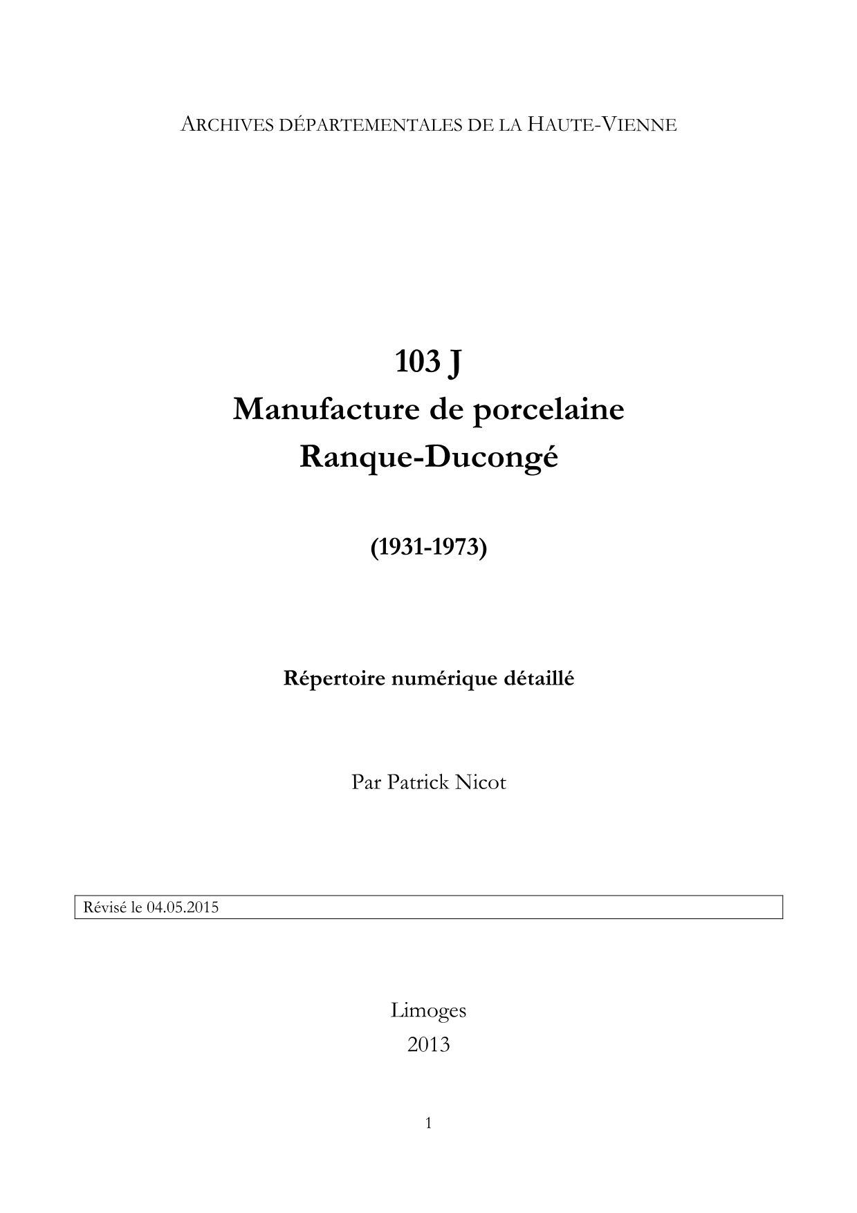 103 J. Répertoire numérique détaillé, par P. Nicot, 2013, 3 p. dact.