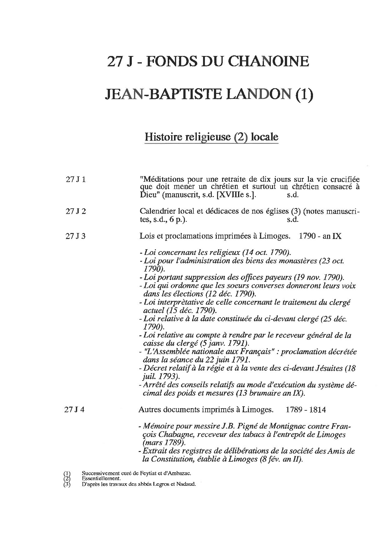 27 J. Répertoire numérique détaillé, par M. Catherine, 1992, 7 p. dact.