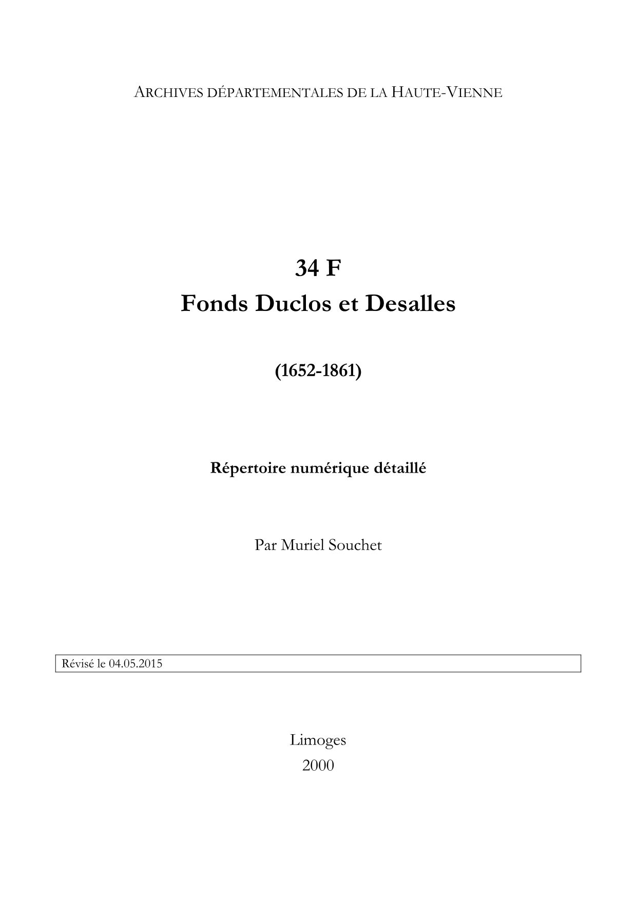 34 F. Répertoire numérique, par M. Souchet, 2000, 13 p. dact.