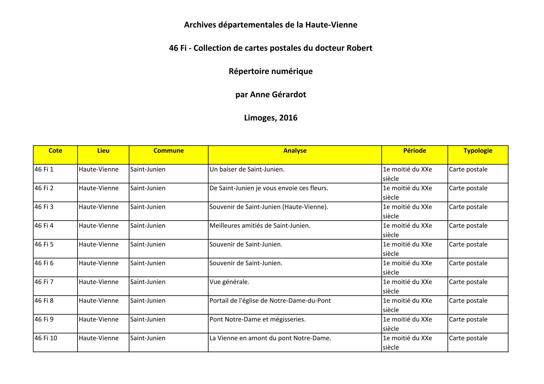 Très importante collection de cartes postales sur la Haute-Vienne constituée par le Dr. Robert, déposée par ses enfants en 2007. Classement par communes, quelques cartes classées thématiquement.