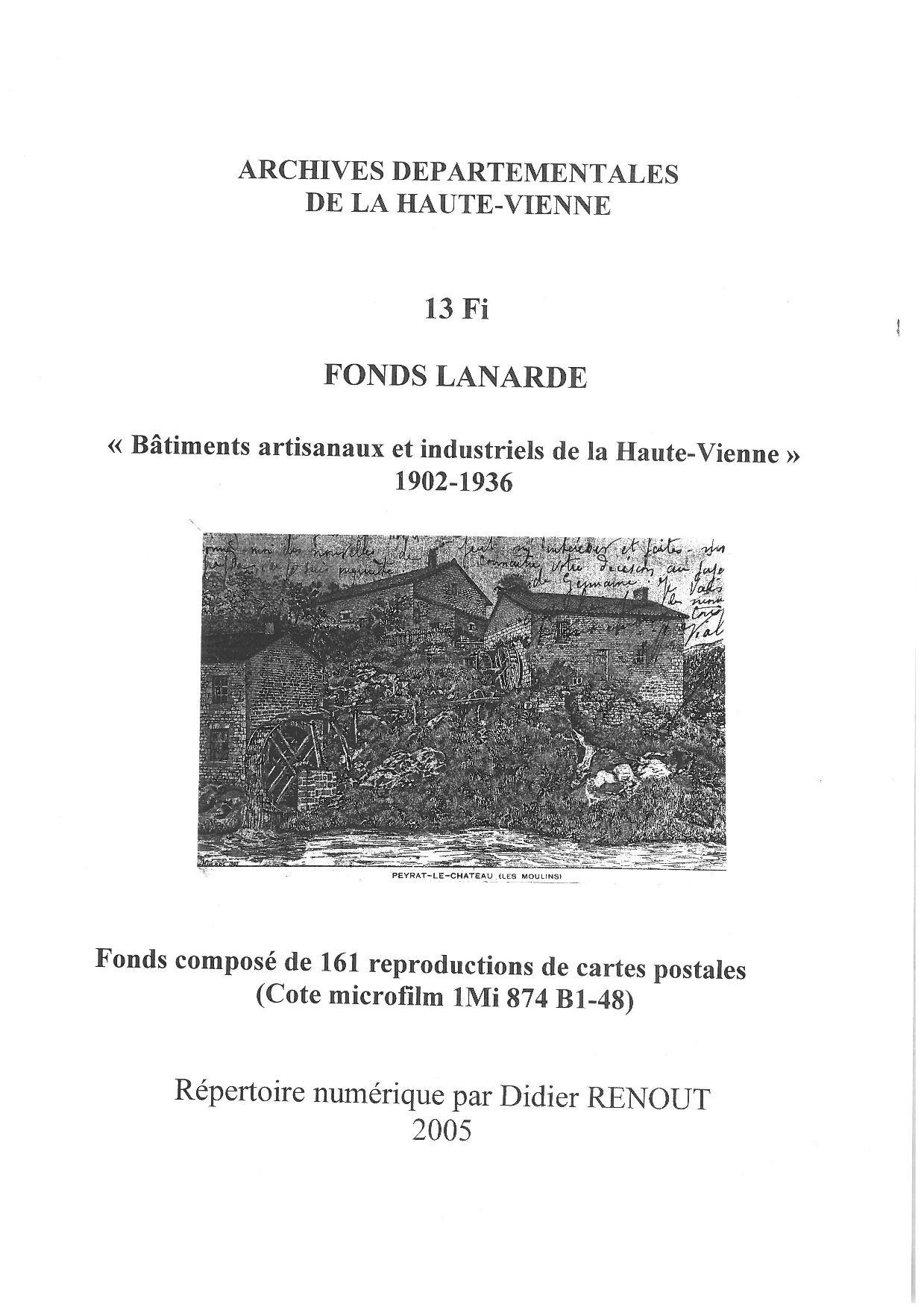 Reproductions récentes (vers 1976) de cartes postales du début du siècle. Cette collection est consacrée aux bâtiments industriels de la Haute-Vienne : moulins, usines de tissage, etc. Prêt de Mme Lanarde.