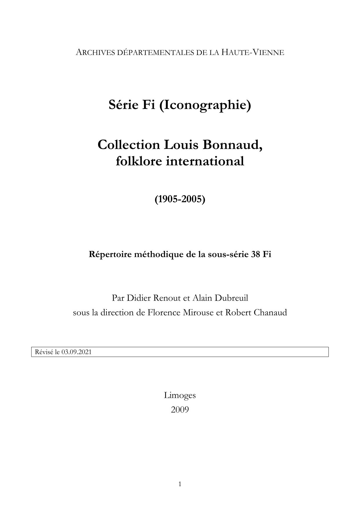 38 Fi. Répertoire méthodique et index, par D. Renout et A. Dubreuil, révisé en 2021, 60 p. dact.